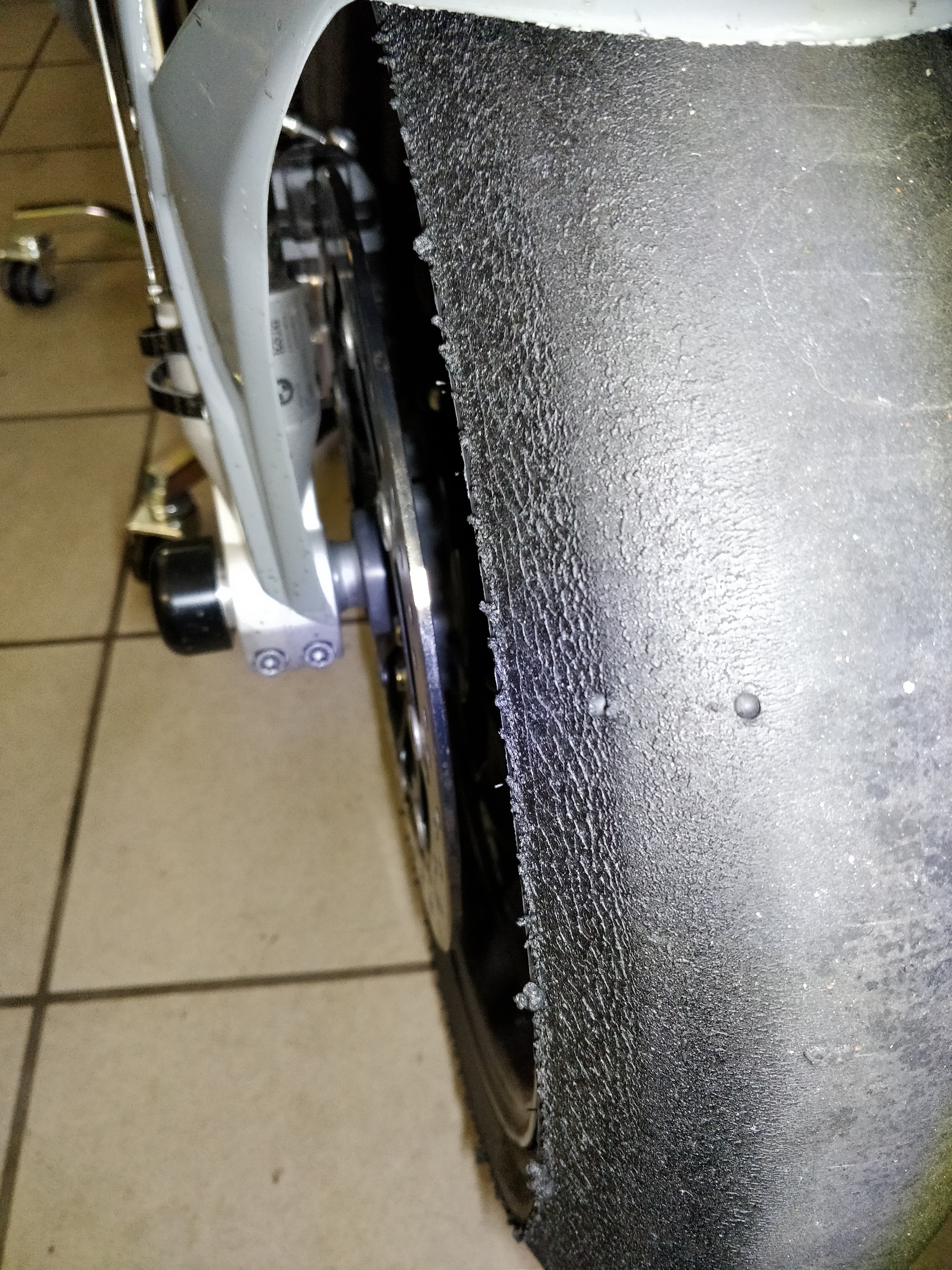 BEI MIR hatte ich nach dem Gabelservice vergessen, die Zugstufe zu öffen. So hatte der Reifen, beim Rausbeschleunigen, zu weing Bodekontakt und hat sich aufgerieben. OC ist halt rechtslastig...