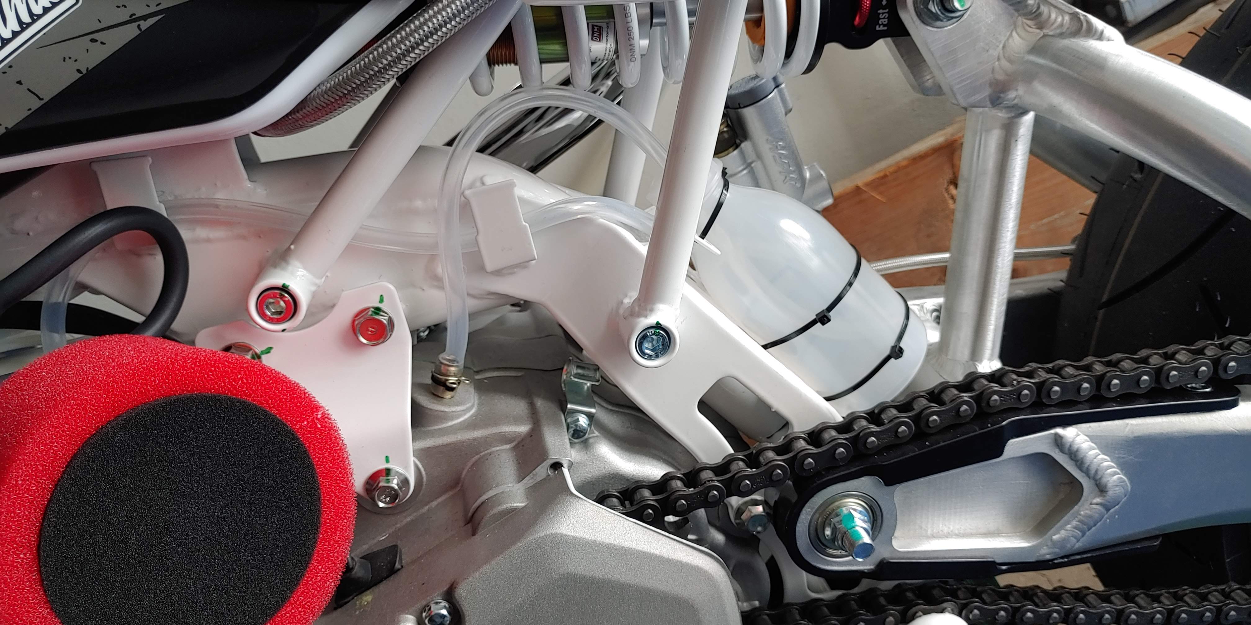 Die Schraube der Nummerntafel sollte auch verklebet oder mit selbstsichernder Mutter versehen werden. Die sind gut genug weil eh kaum Anzugsmoment, vibrieren sich aber gern los und hängen dann beim bremsen an der Leitung runter