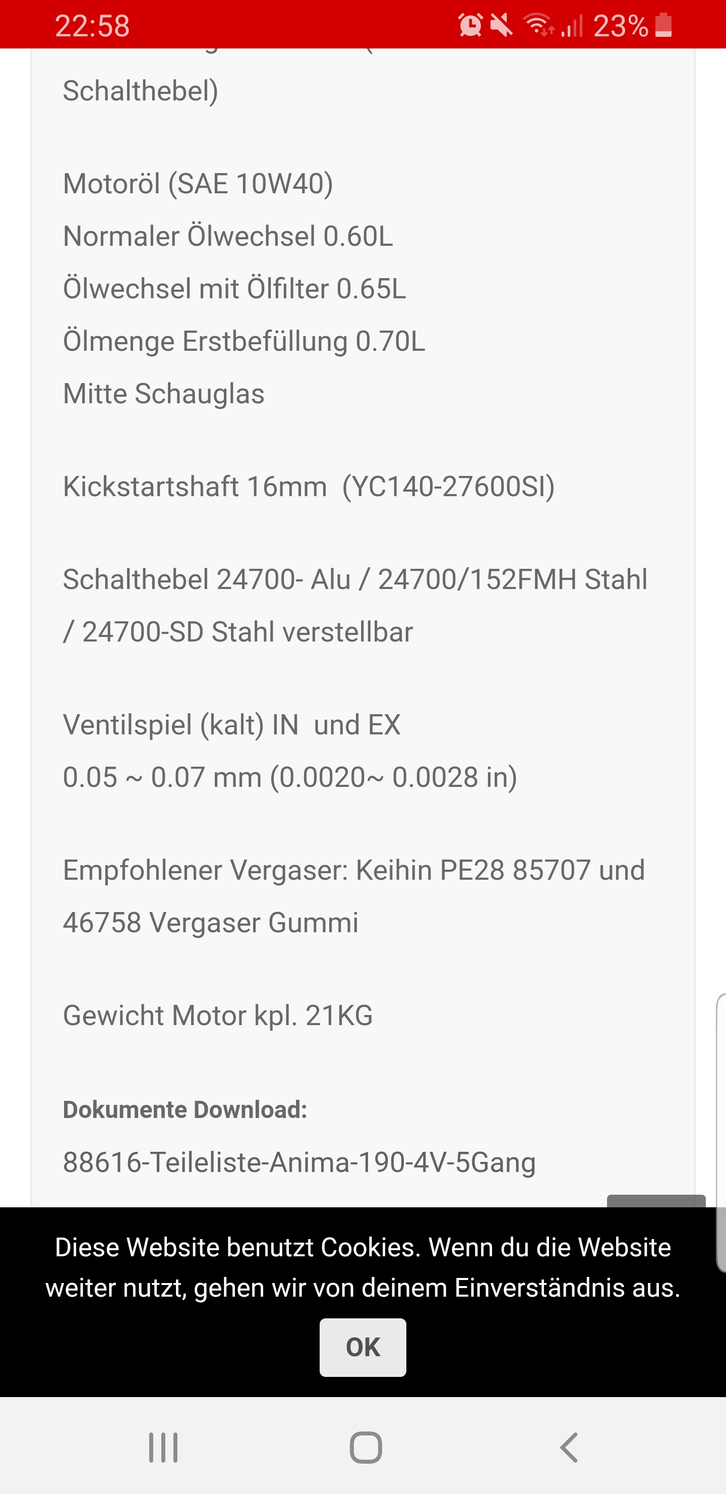 ich suche Motordaten, also Quetschkante, Ventilspiel, Nockenwellenspreizung, etc. für Dayonta Anima V4 190cc Motoren & YX 160cc Motoren.