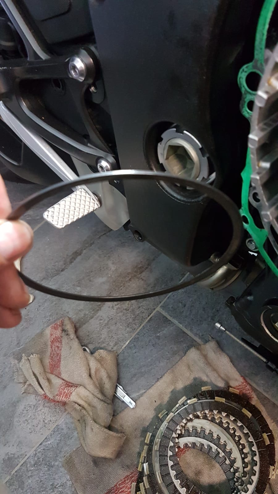 Öl + Filter gewechselt und dann besagtes EBC Kupplungskit (Reibscheiben und verstärkte Federn) eingebaut. Stahlscheiben sind neue von Yamaha.