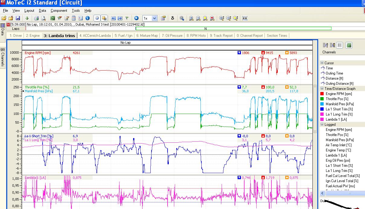 Hoffe du kriegst keine Forstbeulen in HH. Der Lambdawert sieht super aus, besonderst wenn der Turbo einsetzt. Was mir nur auffällt, ist der Shorttrimm, mit +8%schon recht hoch ist. Damit hatte ich auch mal Probleme, aber wenns funzt wieso nicht. Vielecht sollte man noch mal am MAP compesation arbeiten. ich weis ich bin ein Korintenkacker