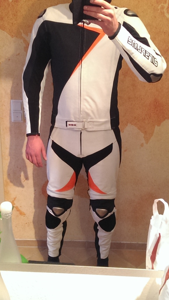 Von der Qualität her ist die Kombi soweit ich das beurteilen kann erste Sahne. Die Protektoren sind sauber eingenäht, das Leder fühlt sich gut an und alles sitzt so wie es soll. Ich bin wirklich zufrieden und werde mir den nächsten Einteiler auch dort bestellen. Anbei noch ein Bild.