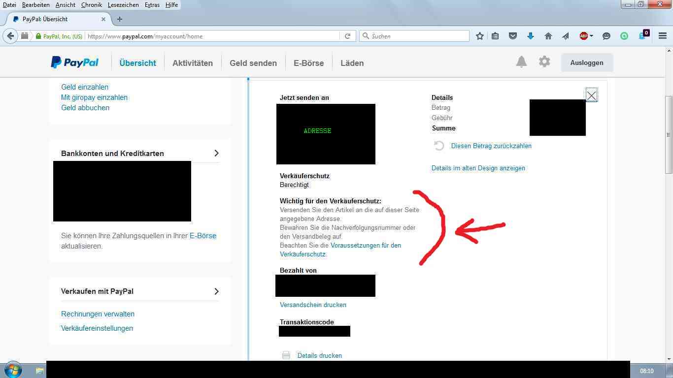 Wird aber nachträglich die Lieferadresse per mail geändert dann entfällt der PayPal Verkäuferschutz. Deshalb Vorsicht.