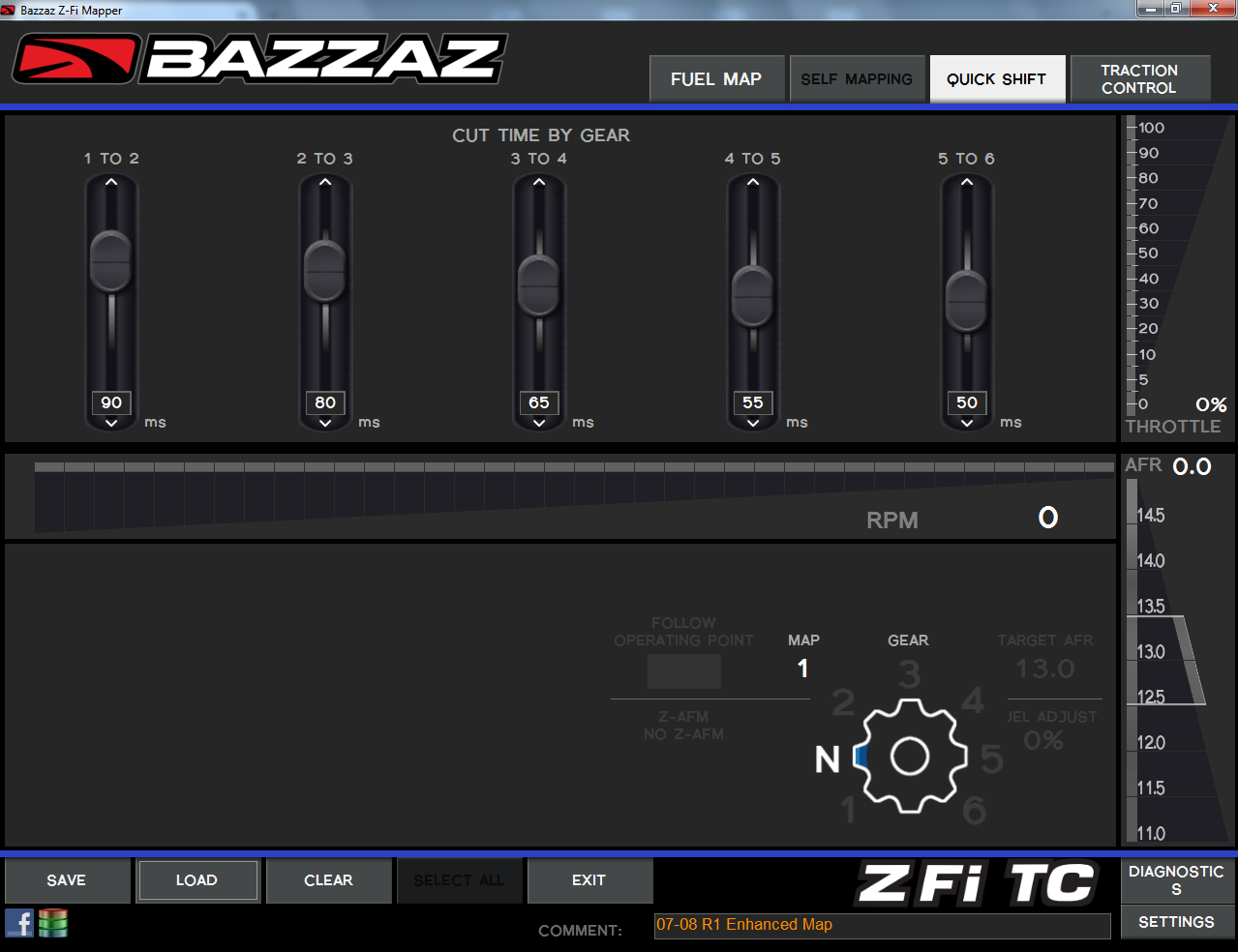 Im Auslieferungszustand steht bei jeder Drehzahl und Gasgriffstellung bei der Empfindlichkeit eine 5 drin (die sich dann mit dem Wahlschalter am Lenker -5 bis +5 addiert) und in der Trockenmap ist der Cutlevel bei jeder Gasgriffstellung 6 und in der Nass-Map 10.