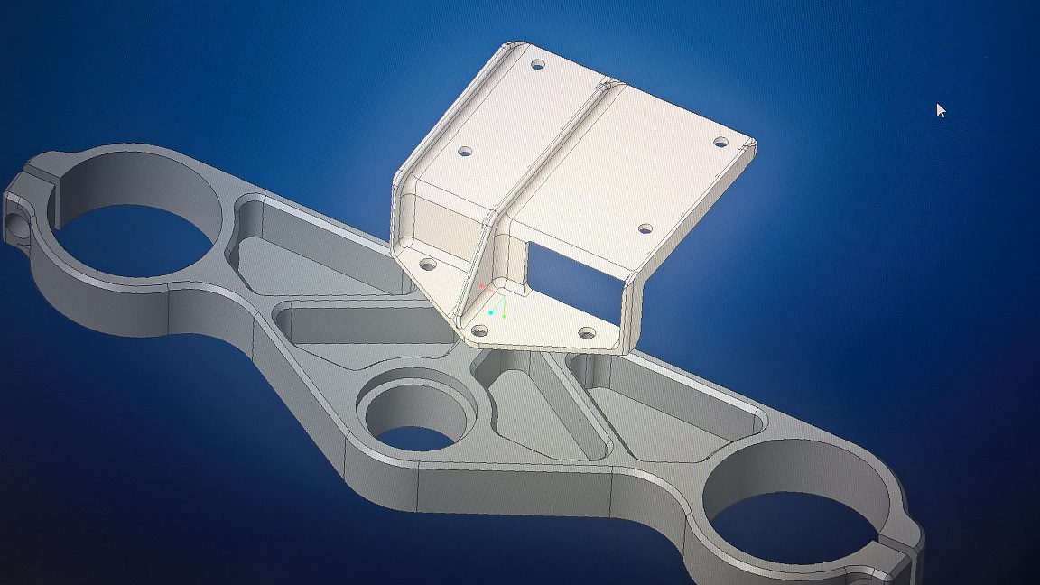 Ansicht von unten. Die Laptimer-Halterung wird 3D-gedruckt und direkt so benutzt. Durch die freie Formgestaltung kann man das super leicht und stabil ausführen