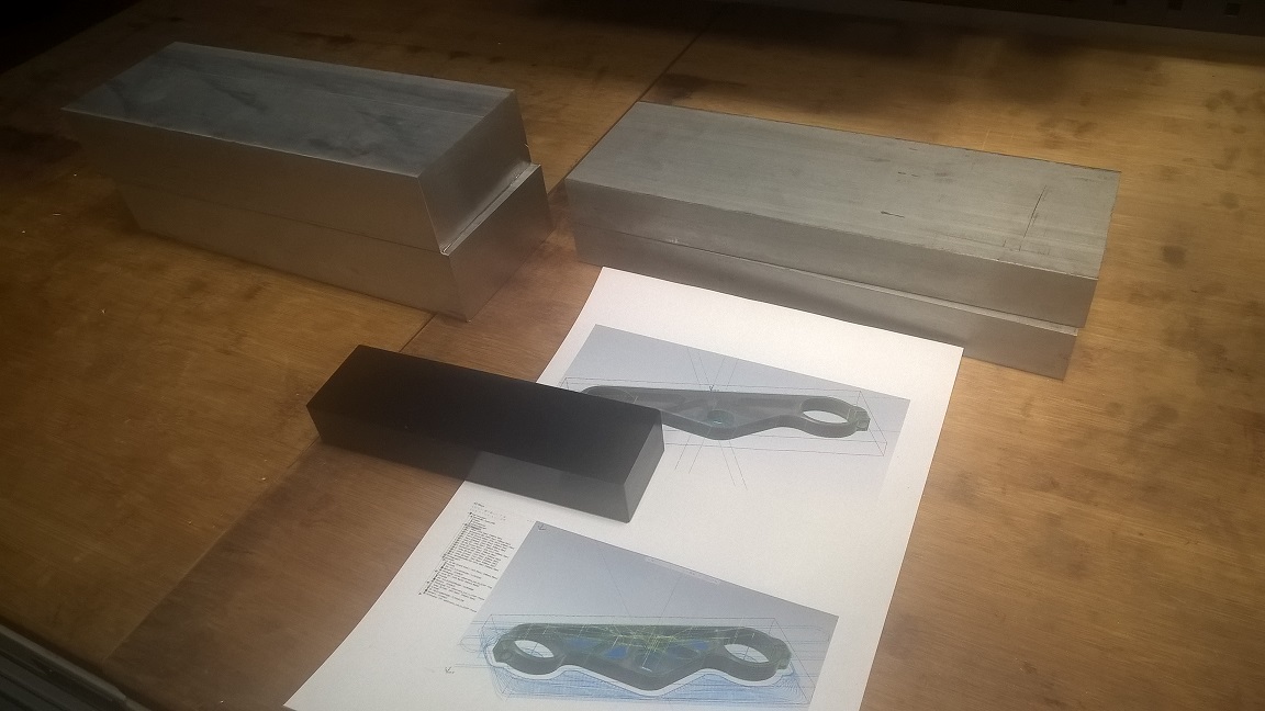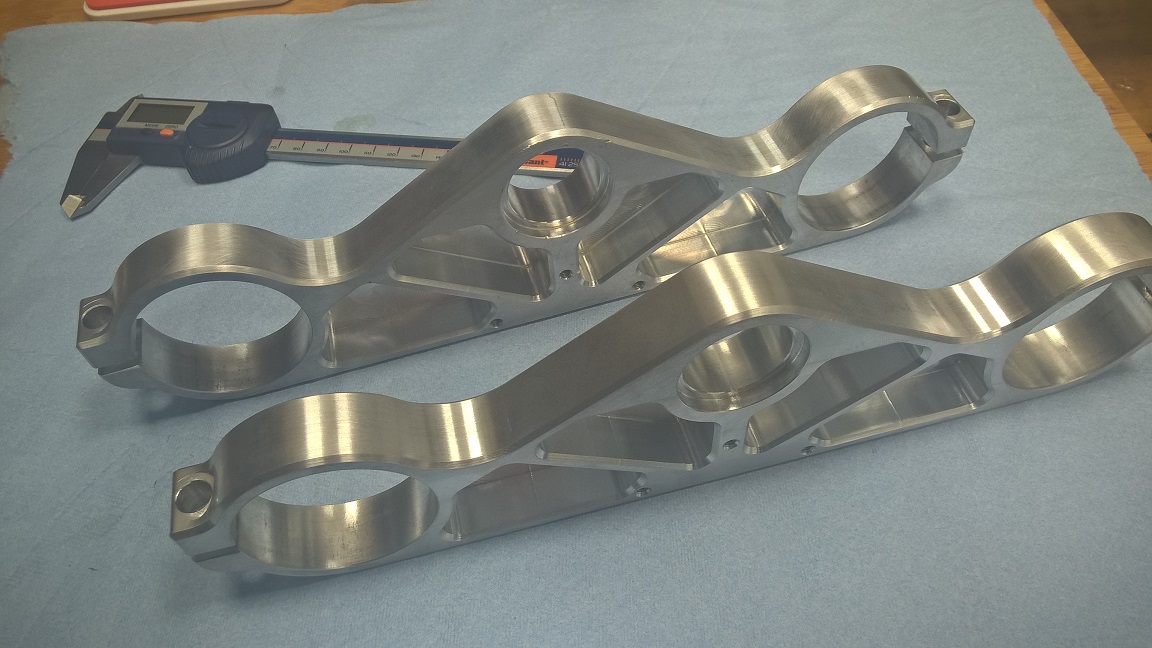 Da der Platz rund um das Cockpit mit Laptimer, Daumenbremse und RamAir relativ beengt wird hab ich beschlossen zuerst die obere Gabelbrücke inkl. Laptimer-Halterung zu machen. So werde ich später besser die Platzverhältnisse einschätzen können. Außerdem baut ne schicke Gabelbrücke einen immer emotional auf wenn die Nächte lang werden