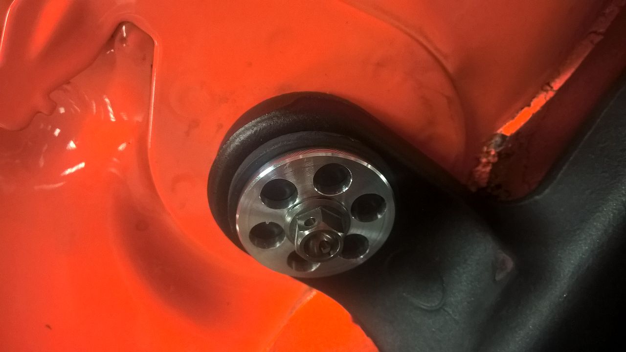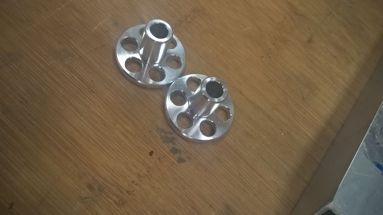 die bremsscheibenschrauben hab ich aus titan gedreht, einen aussensechskant gefräst und im schraubenkopf ist ein M3er innengewinde.