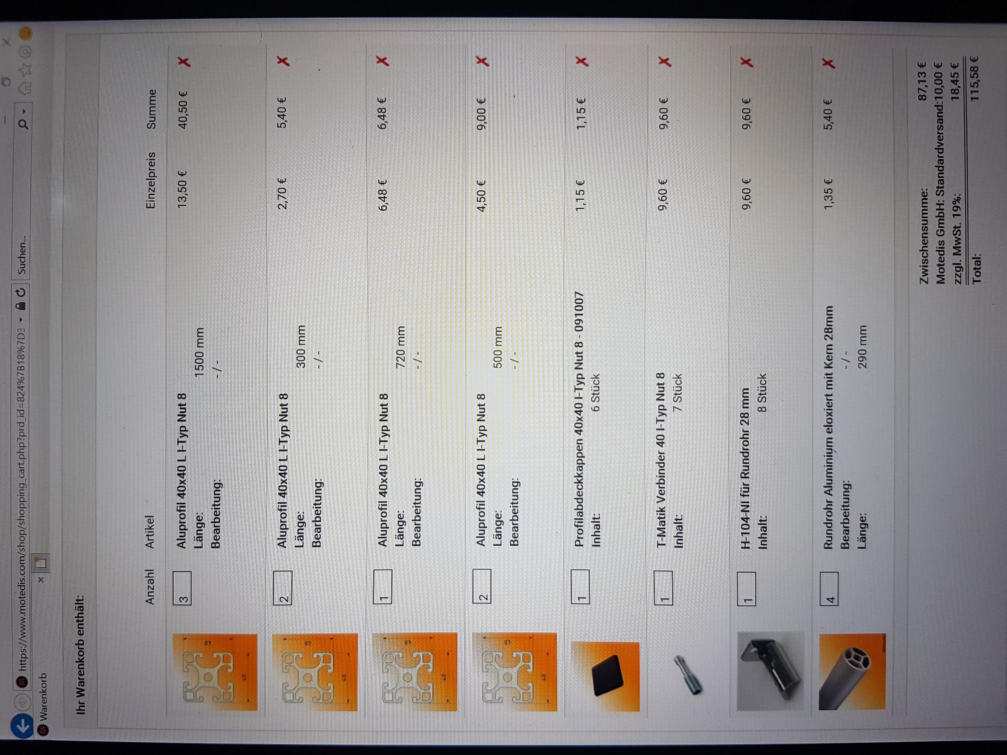 Hab hier mal nen Warenkorb zusammengestellt. Fehlen noch Nutensteine (müssten 15 sein, wenn ich mich nicht verzählt habe) und 8 Schrauben für die Halter der Achsen.