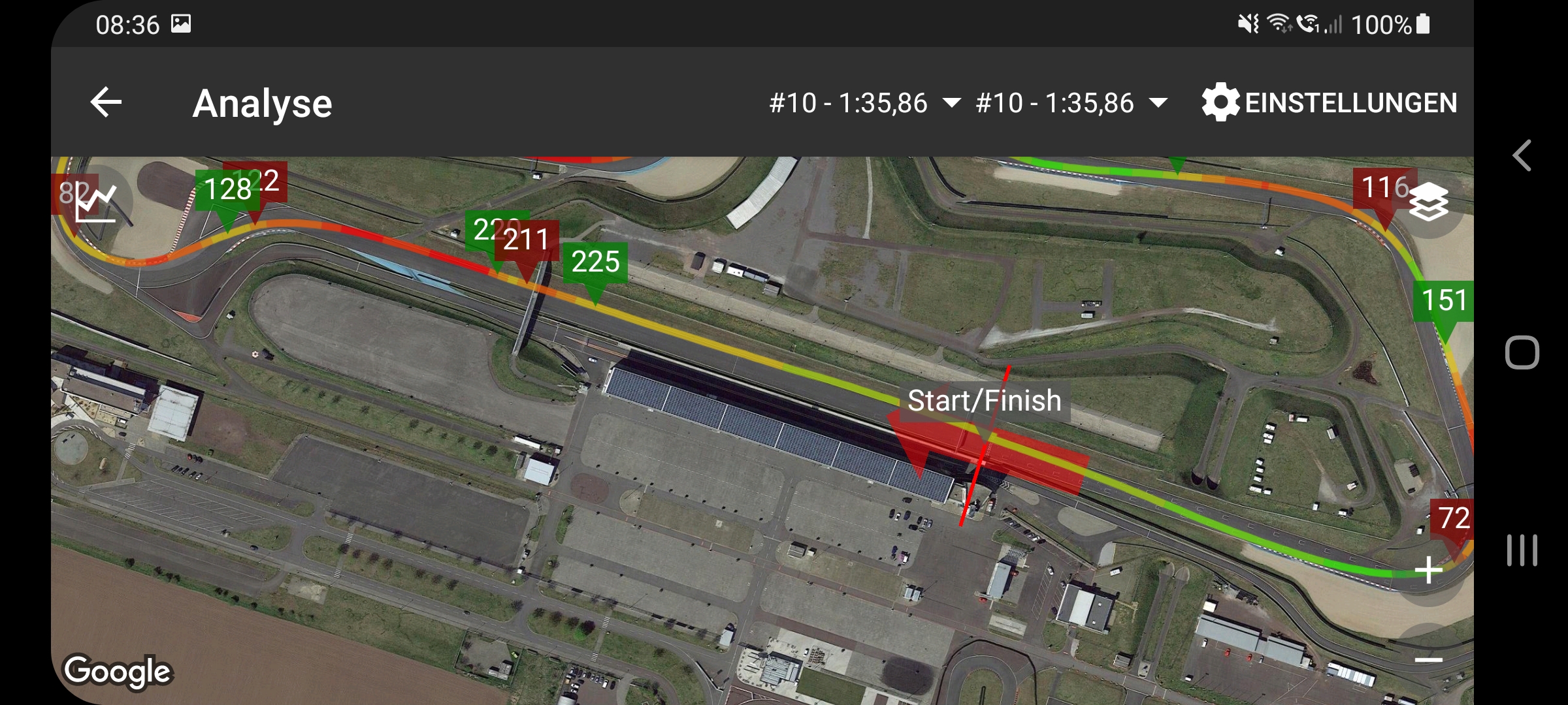 Ich habe gerade mal geschaut, mit der alten 750er K0(Y) habe ich nach RaceChrono 232 auf Start-Ziel bei Zeiten ~01:38
