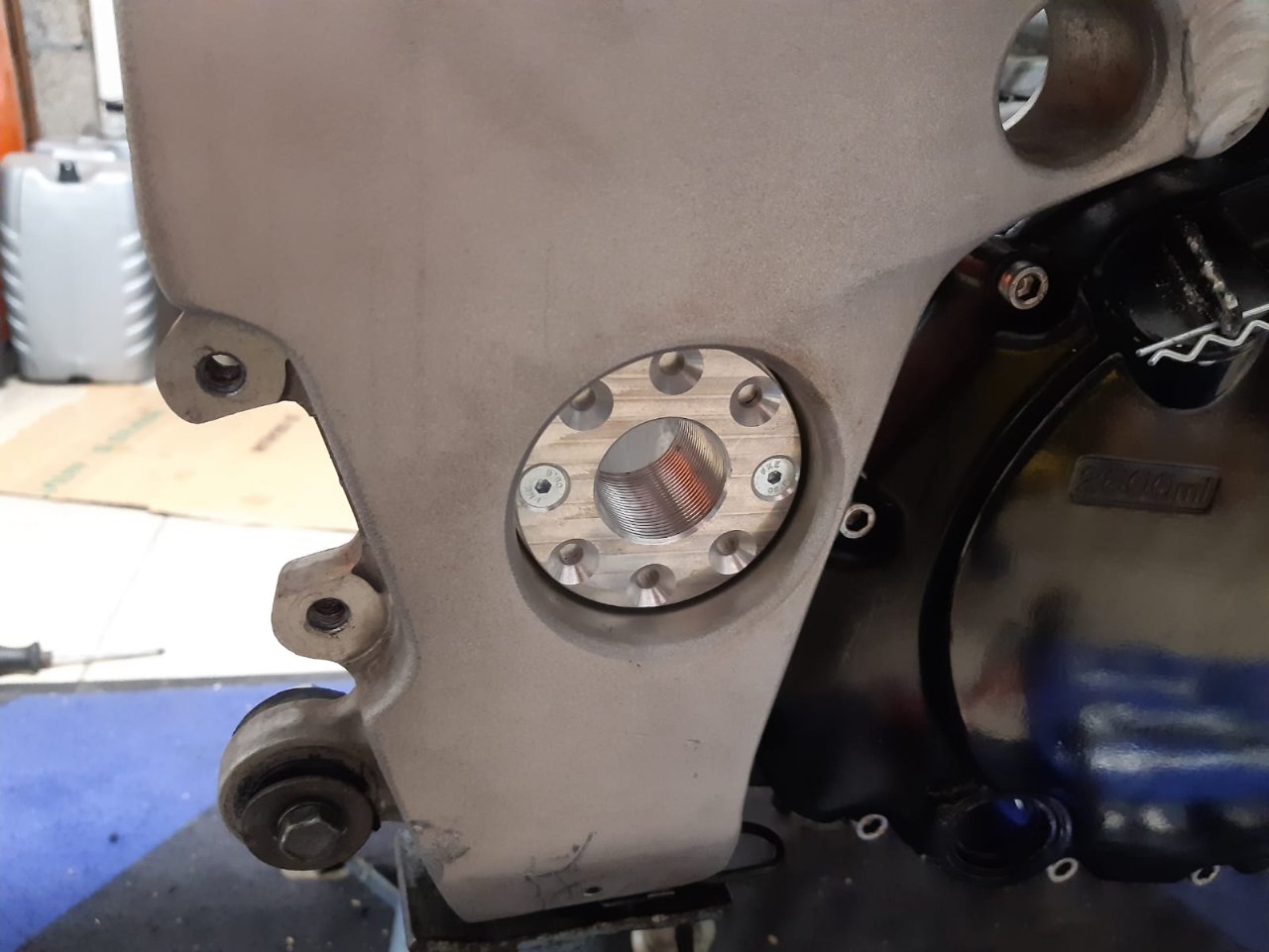 Motorschutzdeckel der Fa. Carbonadi. Der Ausschnitt um an die Schrauben zum Ventile einstellen zu kommen war eine Sonderanfertigung. Falls ihr das auch so haben möchtet, müsst ihr das Anfragen. Die Schutzwirkung ist dadurch zwar reduziert aber mir war es wichtiger, dass ich anständig an meinem Motor arbeiten kann…