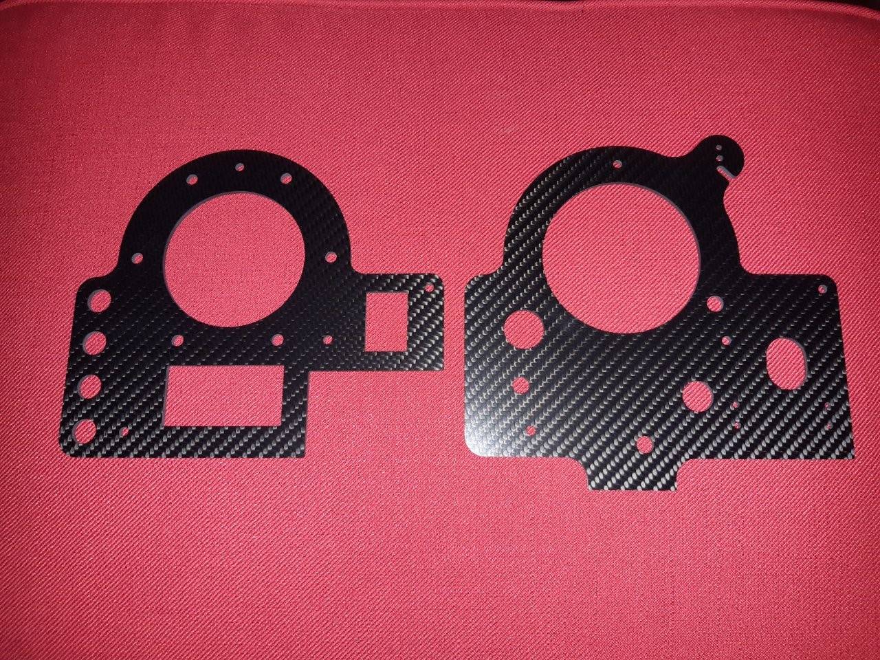 Zum Gehäuse selber: die beiden Grundplatten habe ich aus Carbon fräsen lassen und mit Schrauben und Silentblöcken verbunden, um Vibrationen so gut wie möglich zu reduzieren.
