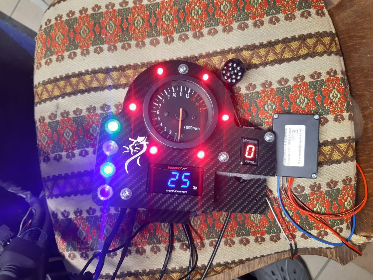 Dummerweise stellte sich heraus, dass mein erwählter Drehzahlmesser Schrott war, was das Anschließen definitiv nicht erleichtert hat. Genau wie der Nächste. Aktuell suche ich nach einem weiteren Ersatz, der nach Möglichkeit funktionieren sollte…