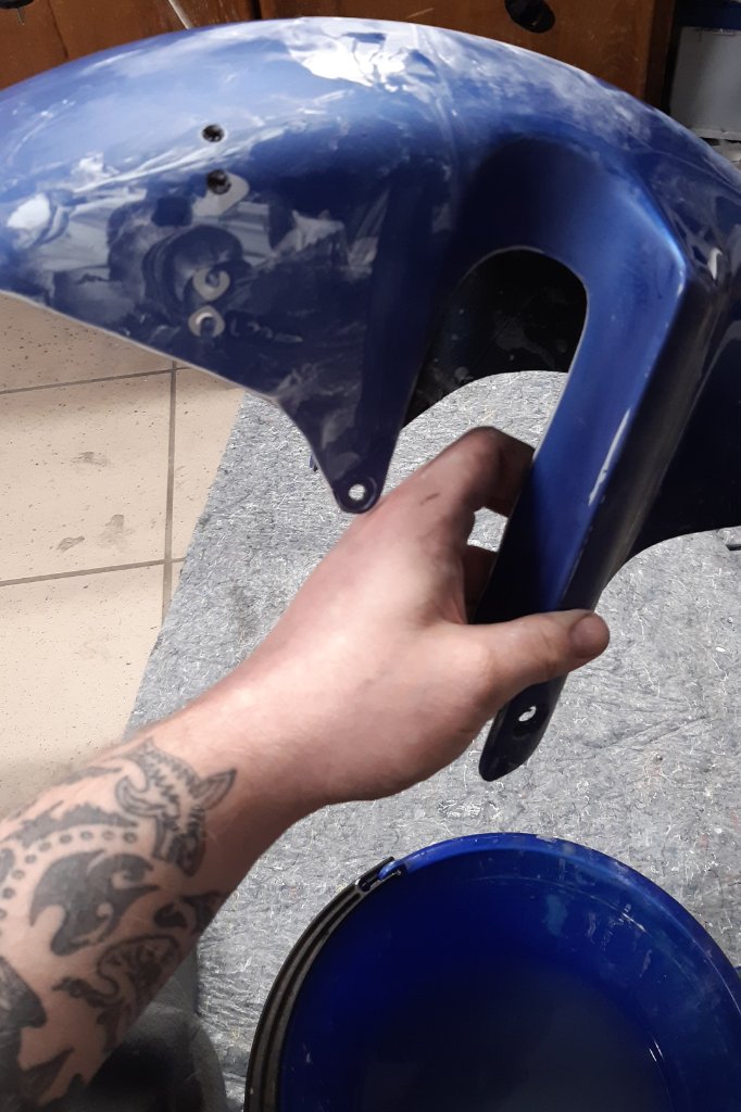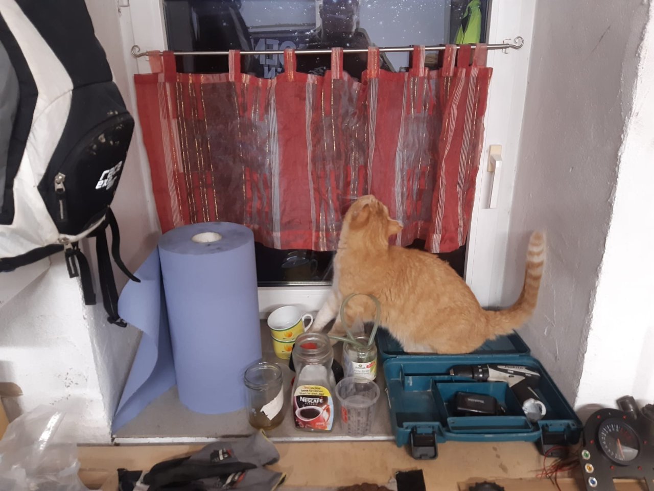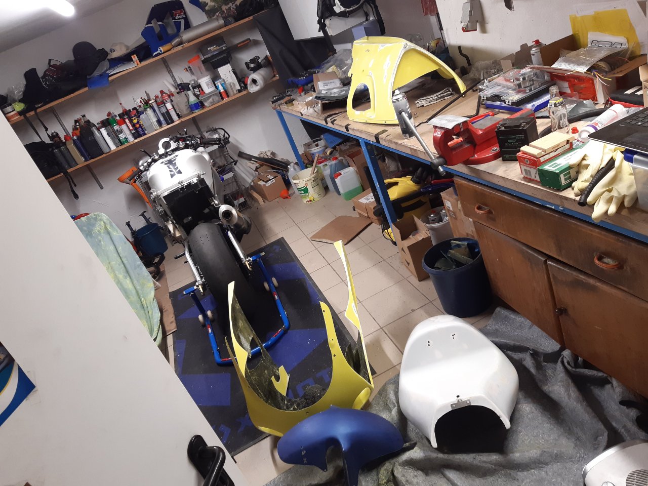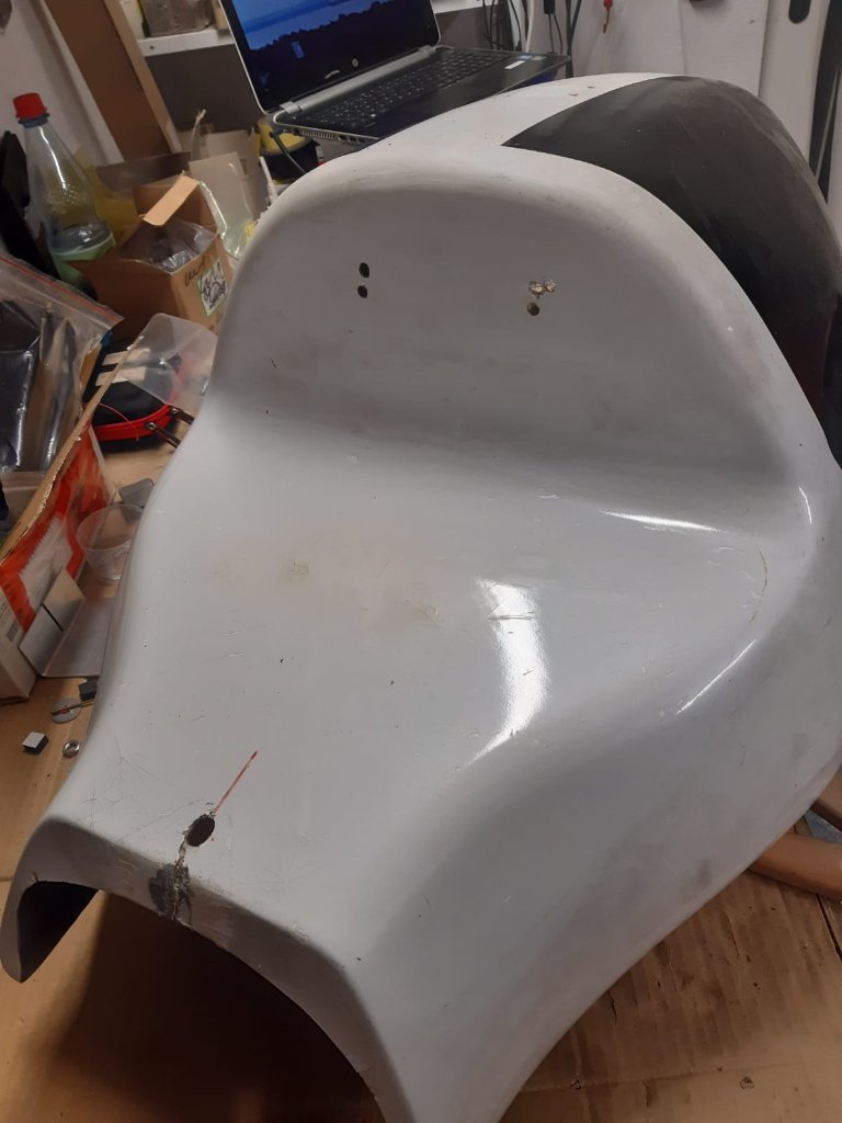 Momentan bin ich noch damit beschäftigt, die Verkleidungsteile zu Schleifen, damit ich lackieren kann, sobald das Wetter besser wird. Das wird nämlich eine so genannte „outdoor-activity“.