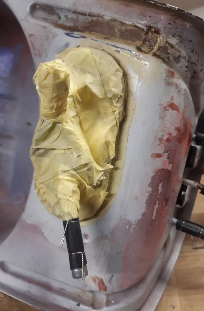 Fender, Luftkanäle und Heck sind geschliffen. Fehlen „nur“ noch Front und Tank. Diesen mache ich als Letzten, damit ich noch die Möglichkeit habe, Drehzahlmesser zu testen.