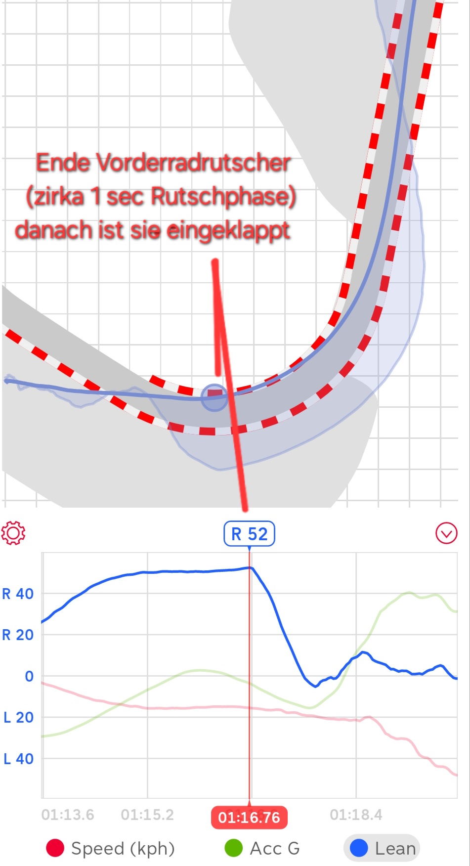 Ich teile mal meine Raceboxdaten vom Sturz. Beginn des Rutschers und Ende des Rutschers (Einklappen des Vorderrades).
