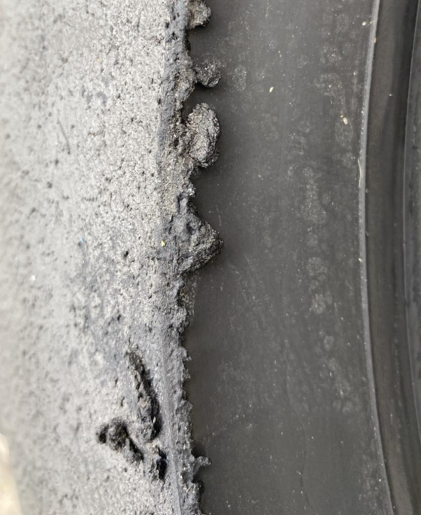 Der Reifen war vorher 4 Tage im Einsatz sah aber noch passabel aus. Verschleissmarkierungen waren gut sichtbar, insbesondere auf der äußeren Flanke. Luftdruck hatte ich 2 Turns vorher beim reinkommen mit 1,6 heiß gemessen. Könnte also vielleicht etwas höher gewesen sein.