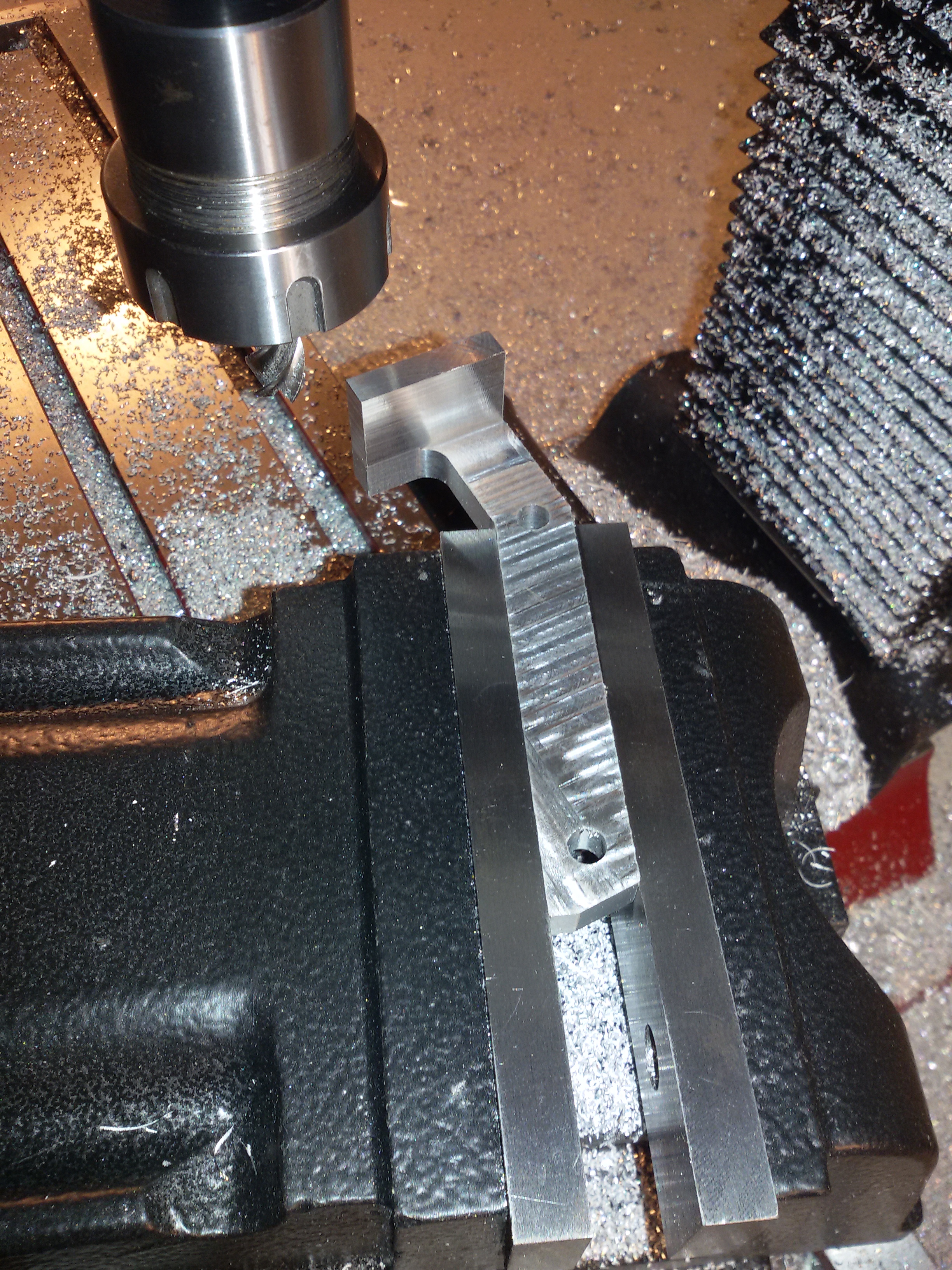 Ne das hat mehrere Gründe, das Design vom Prototypen zielte eigentlich darauf ab, dass ich so die Klemmung einfach auf der CNC-Fräse durchfräsen kann und nicht nochmal in einem zusätzlichen Arbeitsschritt diese geschlitzt werden muss.