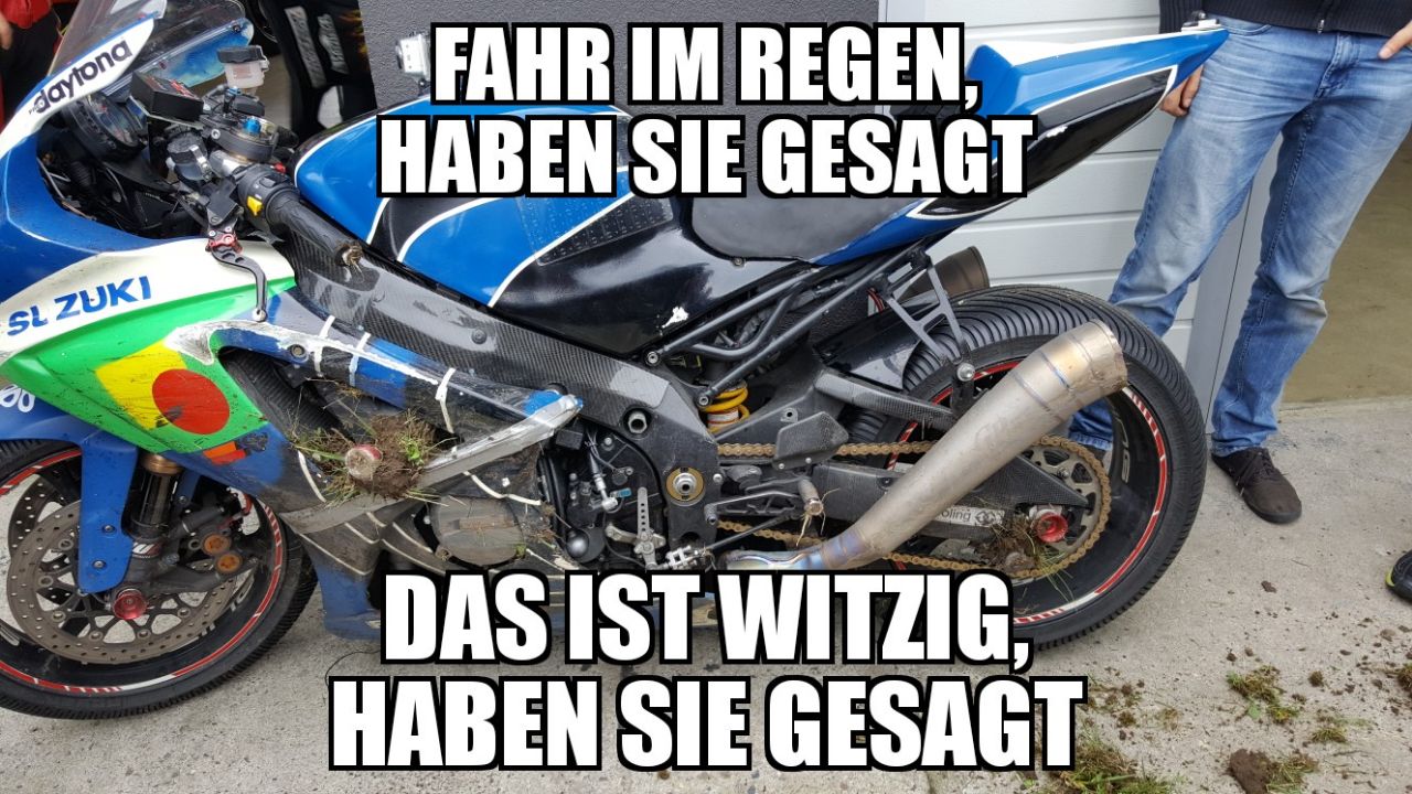 Aber trotzdem fehlt mir immer das Gefühl für's Limit bei Regen. Und dann macht es meist ZACK, und ich liege auf der Nase.