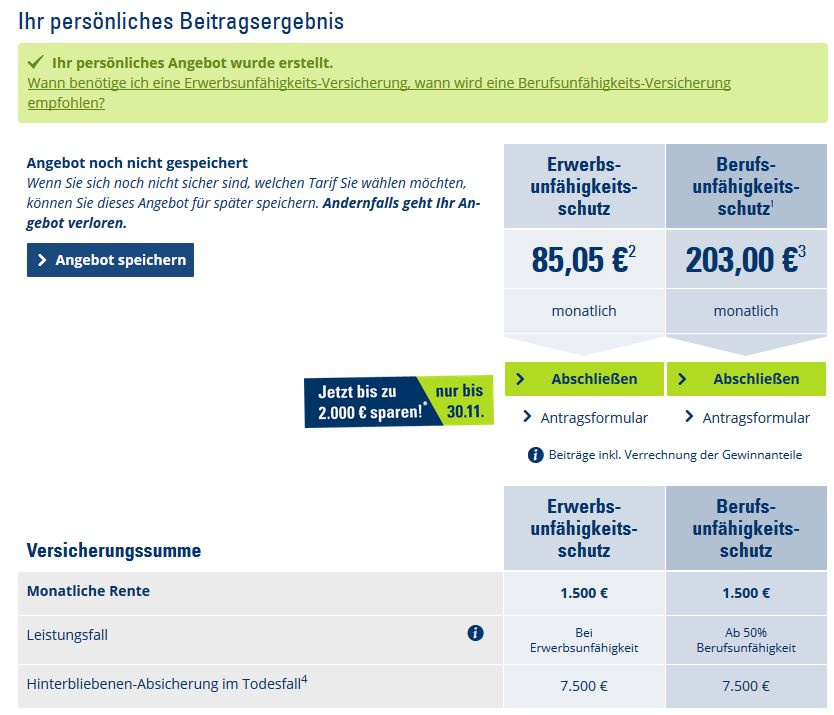 580 € Jahresbeitrag für 1.600 € Berufsunfähigkeitsrente finde ich nicht teuer.
