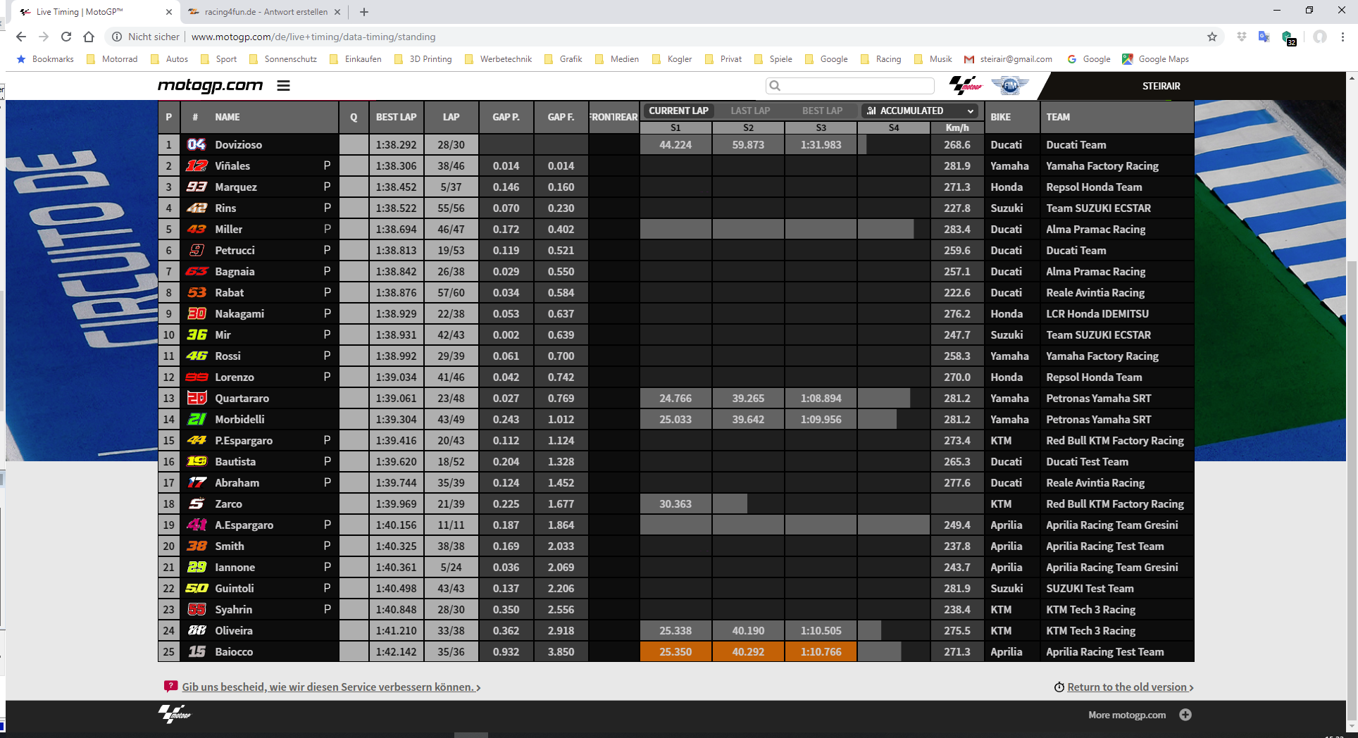 Henning #17 hat geschrieben:Yamaha hängt aktuell über 0,5 sec zurück, damit dürften Rossis aussagen ernst zunehmen sein: