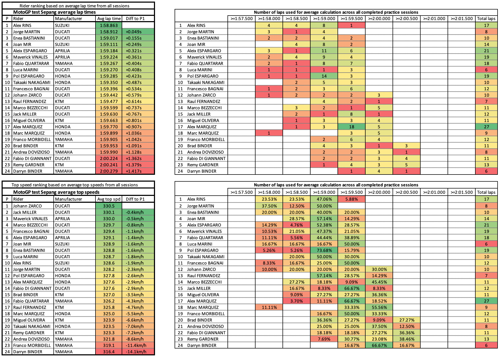 Auf Twitter eine interessante Tabelle vom Sepangtest gefunden.