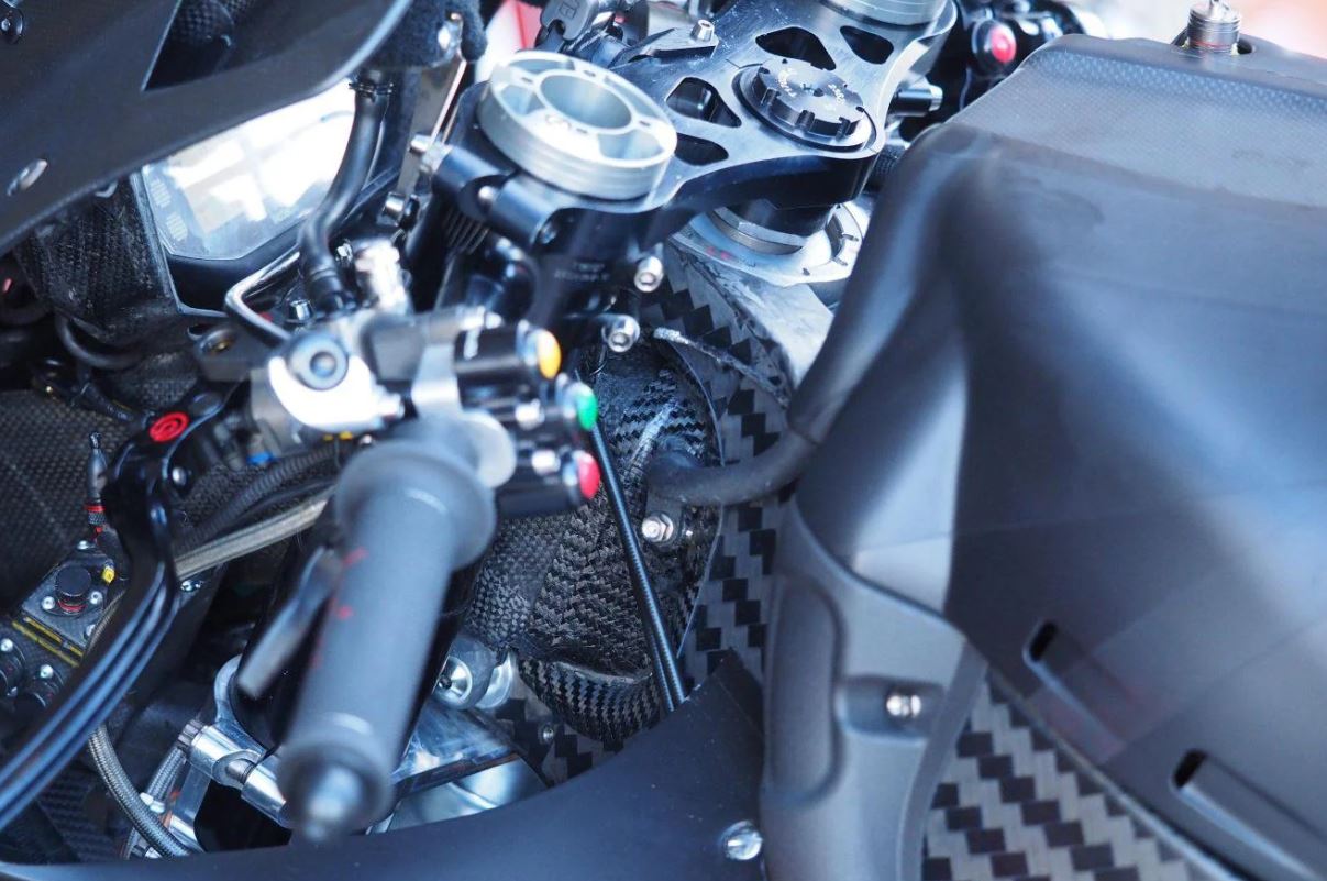 Aprilias Carbonrahmen, Bilder vom Test gestern - sehr sexy. Und scheint zu funktionieren.