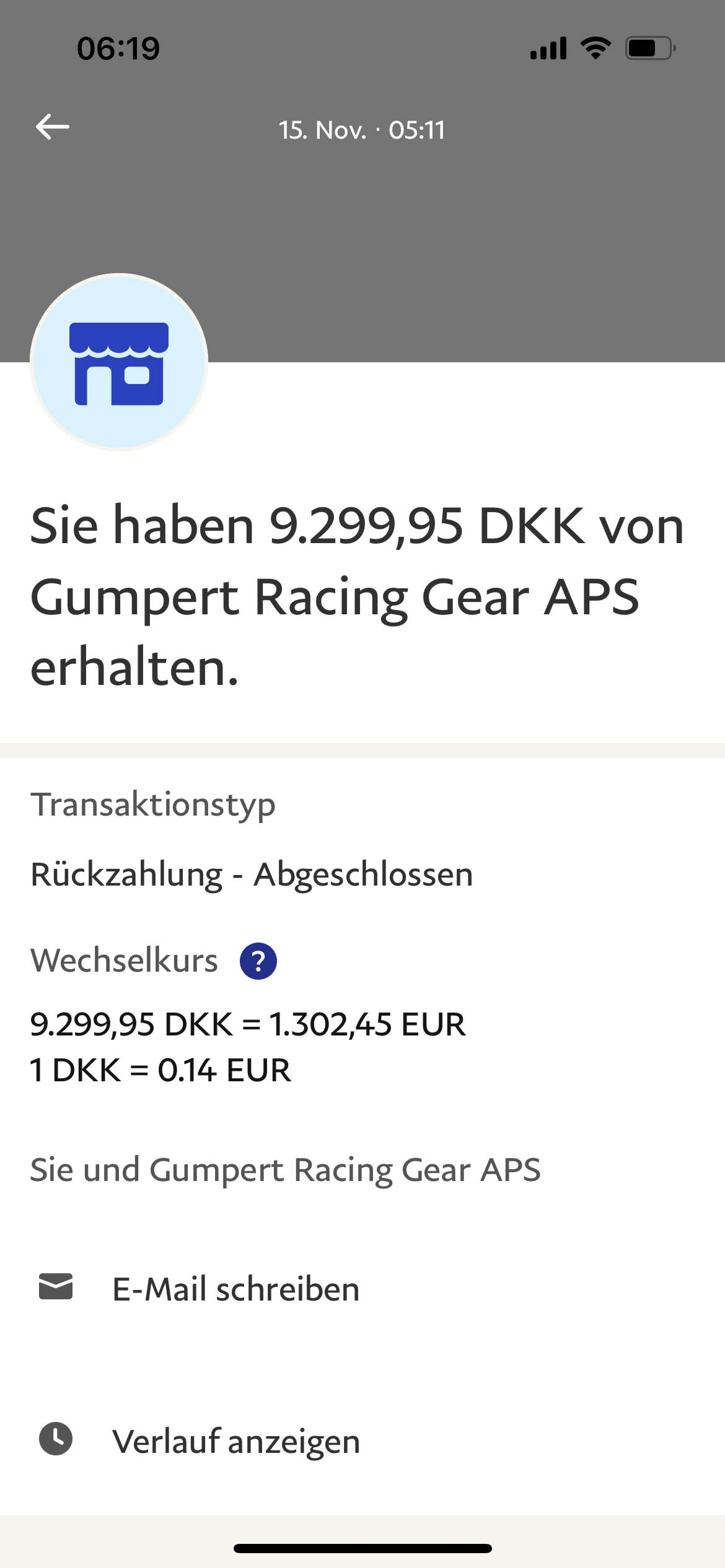 Ich konnte dann nachweisen das ich den Lederkombi wieder zu ihm nach Dänemark geschickt habe und ihn nicht wieder zurückerhalten habe. Der Fall wurde zu meinen Gunsten entschieden und ich habe die Anzahlung zurückerhalten. ( ein bisschen Schadensbegrenzung )