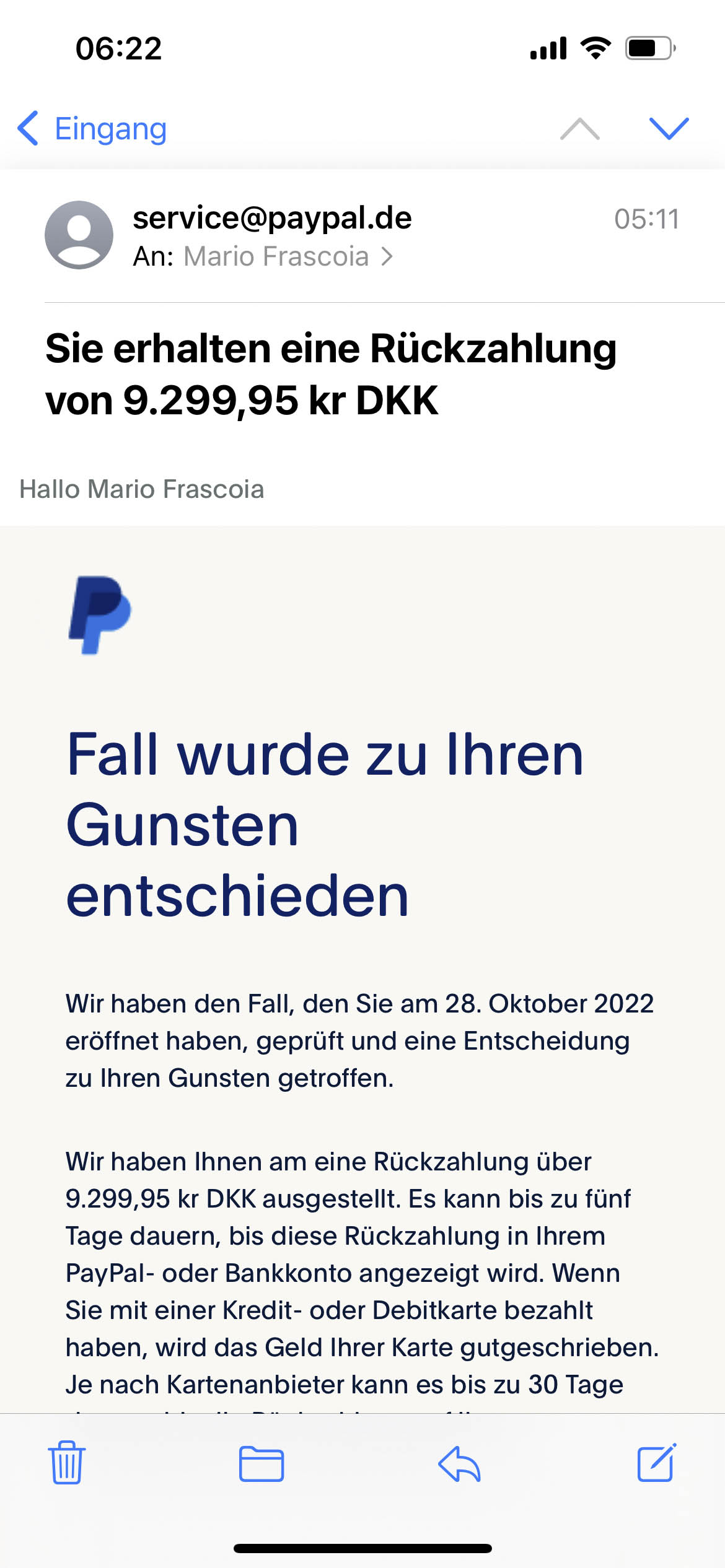 :roll: Das ist ja immer noch nicht mal die Hälfte der Kohle aber immerhin halt 1300 € die schon abgeschrieben waren.
