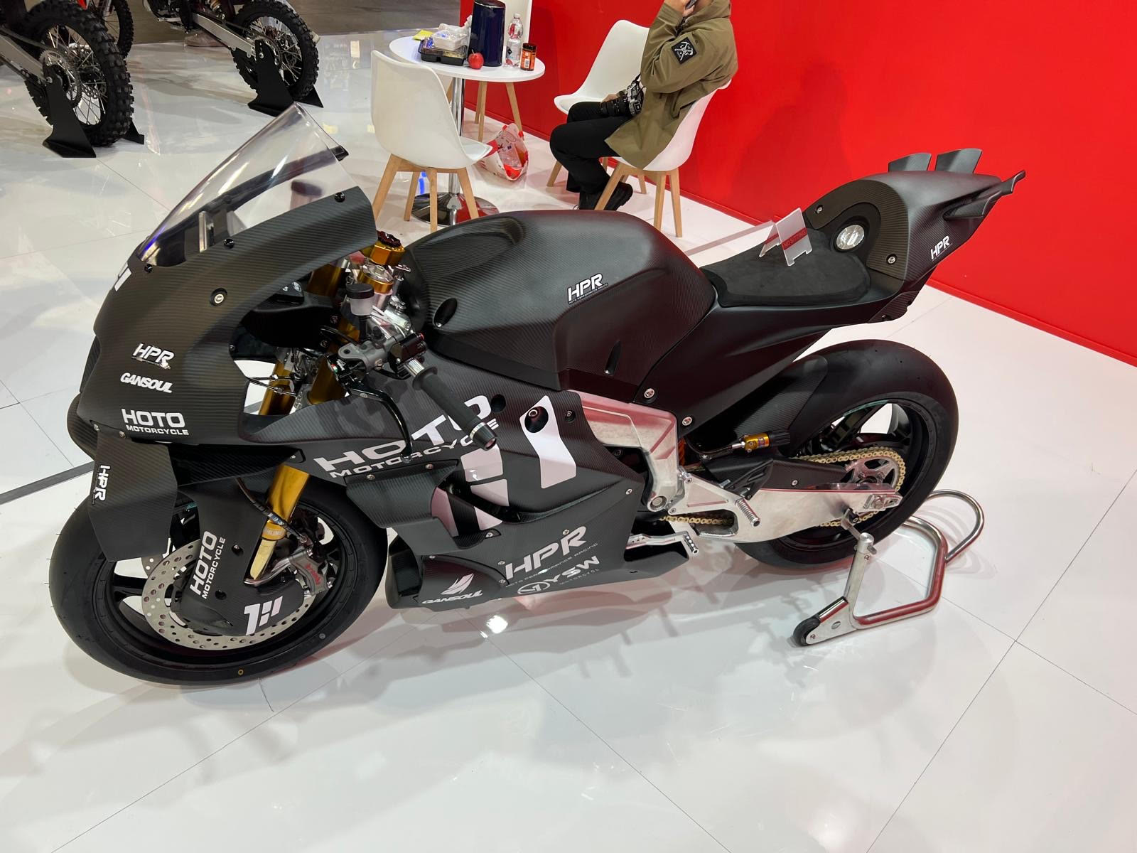 Sie sind alle bereits deutlich weiter. Hier zu sehen ist ein Motorrad mit einem 2V-Motor von KTM/CF-Moto, kompletter Öhlins-Ausstattung, Carbonteilen, CNC-Komponenten usw., entwickelt gemeinsam mit Kalex (das wurde letztes Jahr bereits auf der EICMA gesagt) sowie mit den chinesischen Firmen YSW und HOTO.