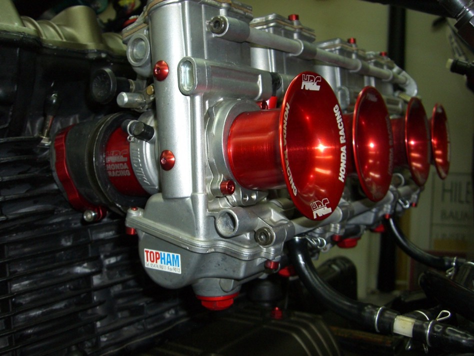 Carbon-Tank, Titan-Auspuffanlage, Seitendeckel, Sitzunterkonstruktion und Heck auch aus Carbon.