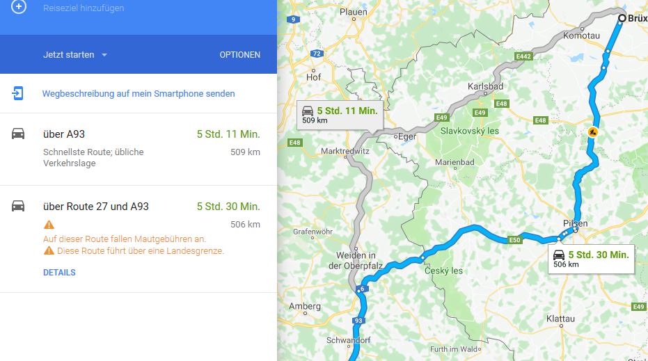 Laut "echtes Leben" ist die Strecke über Eger und Karlsbad mautfrei
