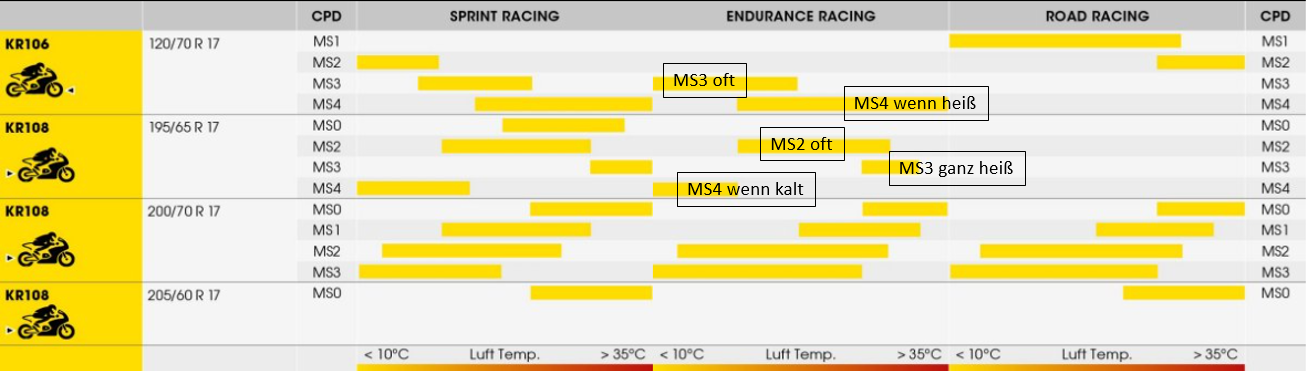 Vorderreifen? Seh ich das richtig MS3 immer, MS4 wenn ganz heiß?