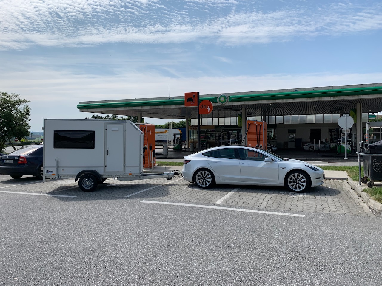 Der kleine Skoda zieht den Koffer sehr solide, auch durch die Alpen oder Pyrenäen. Selbst bei längeren Steigungen sind 100 km/h kein Problem und Überhitzung kennt er auch nicht.