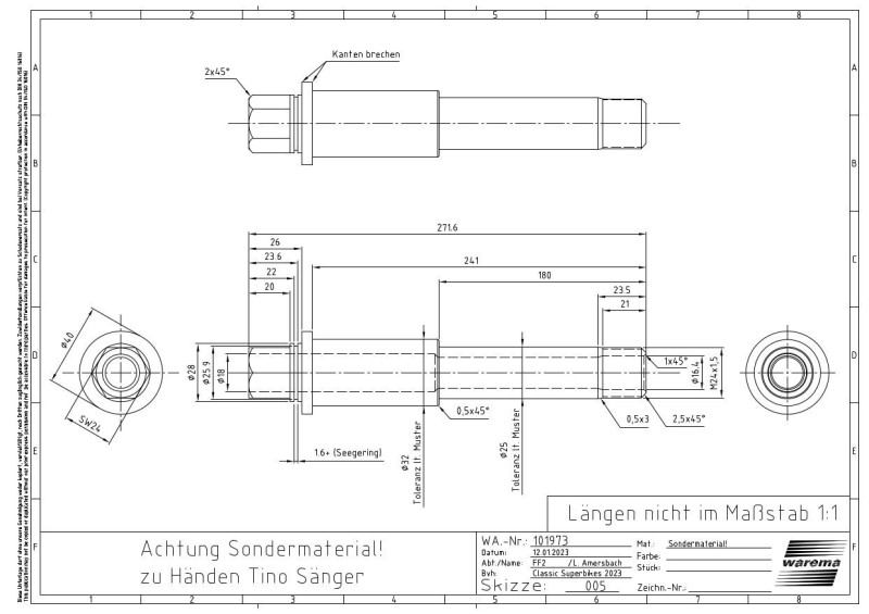 -> Hierfür drehe ich mir noch neue Lenkerstummel mit 310mm Länge