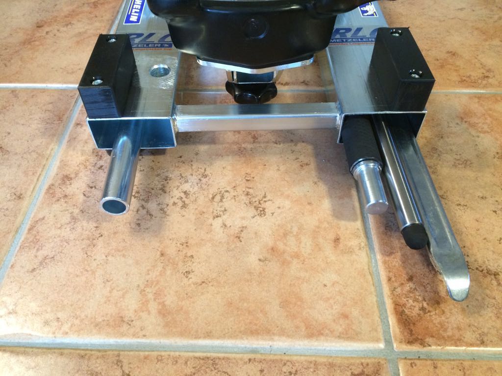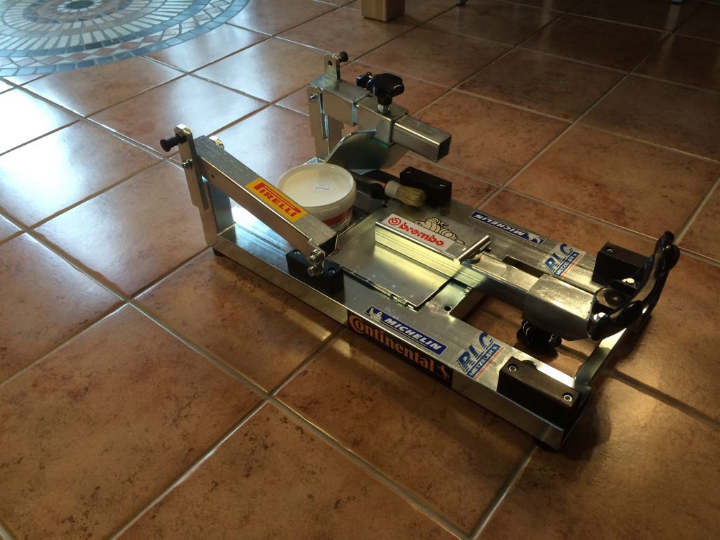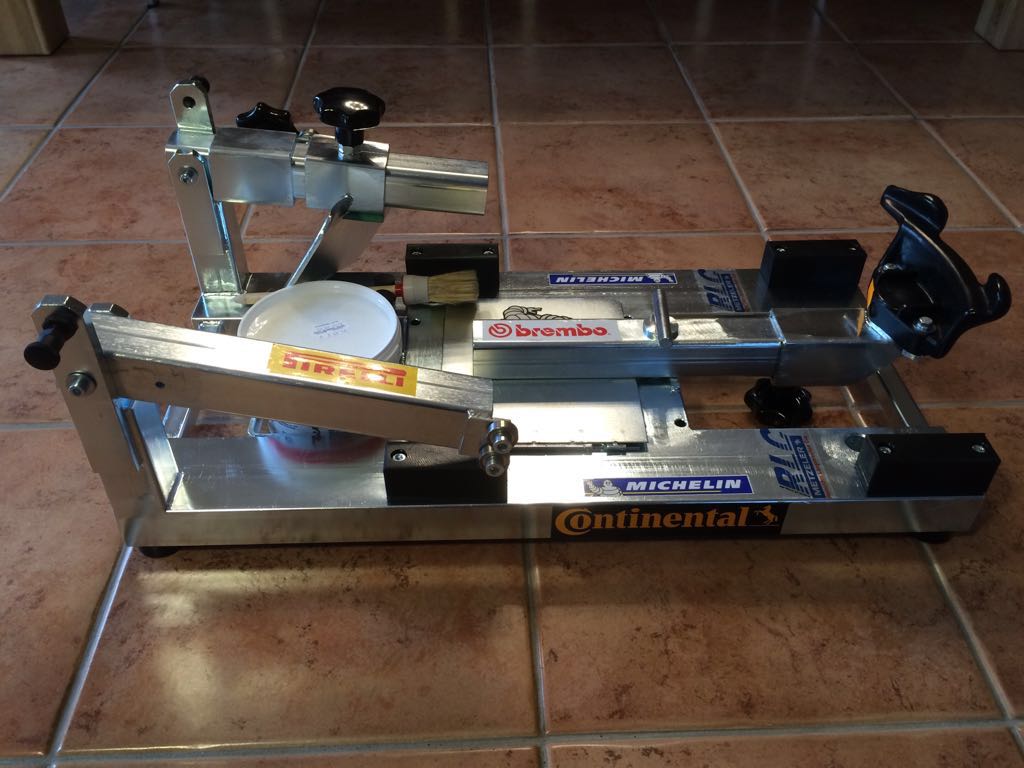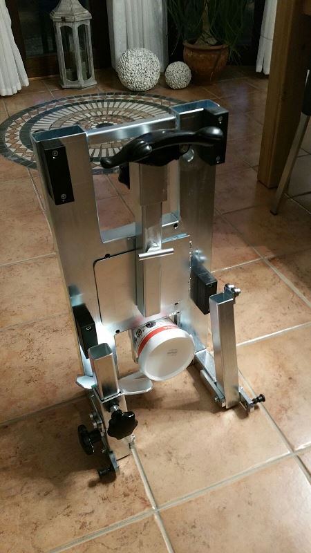 Das Gerät steht super stabil und rutschfest auf Gummifüßen, da es durch den soliden Stahlbau ein relativ hohes Gewicht hat. Als Felgenauflage dient fest verschraubter weicher Kunststoff, kein aufgeklebtes Gummi oder so.