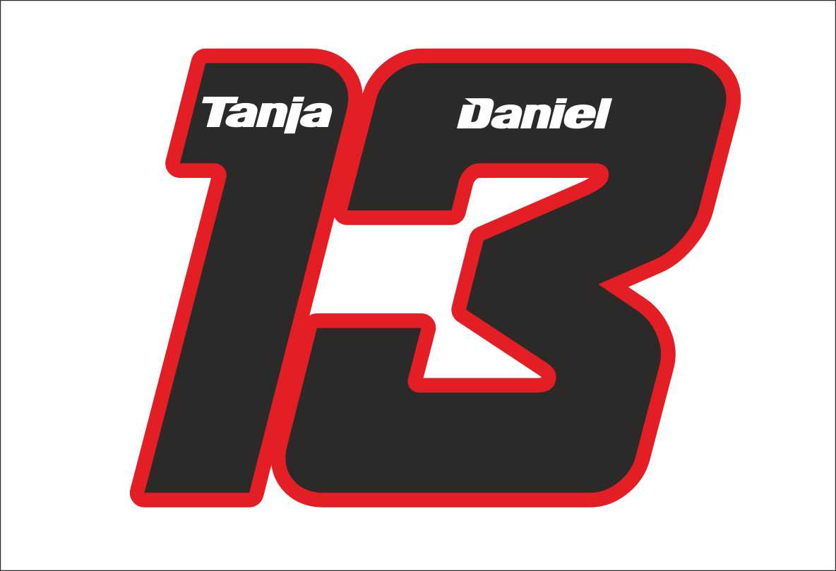Ich bräuchte eine 13 in schwarz mit rotem Rand und die Namen Tanja in der 1 und Daniel in der 3.