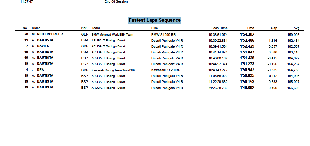 Hier der Link zum live Timing der WSBK, läuft aktuell FP1