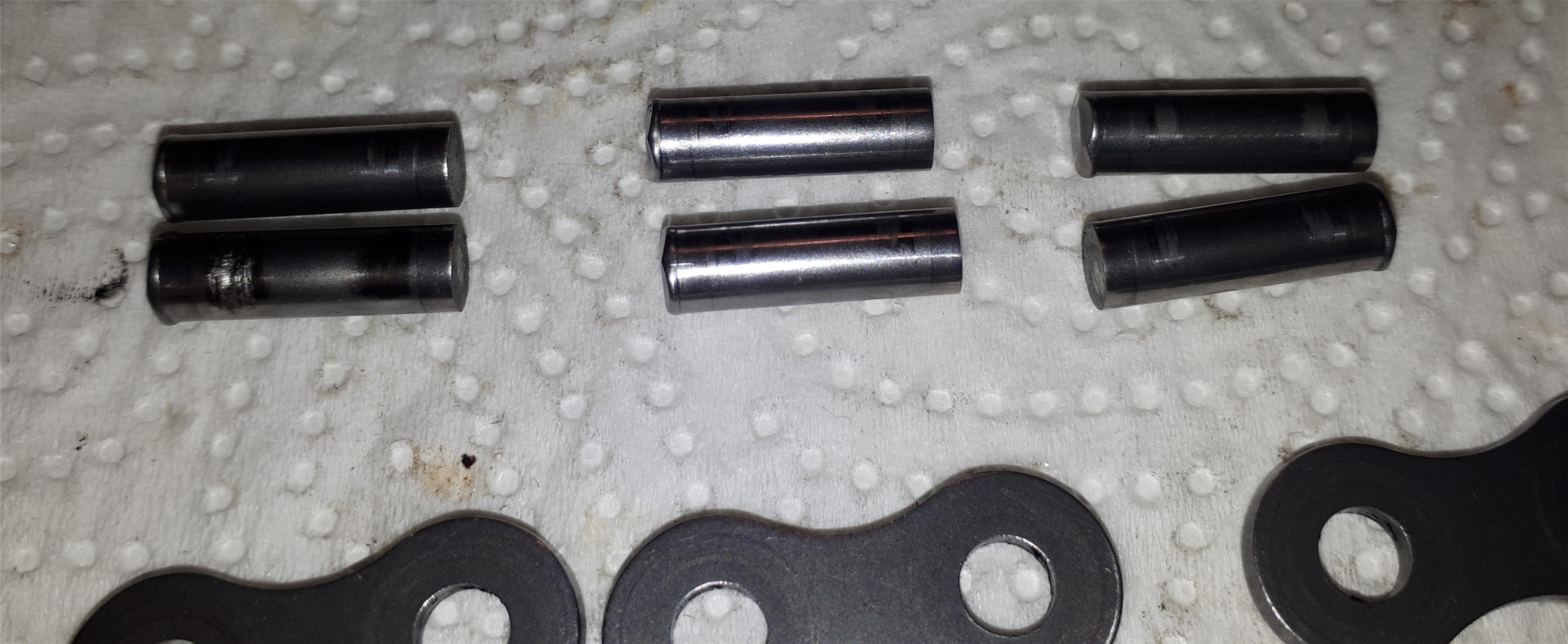 Dazu habe ich in unregelmäßigen Abständen Kettenglieder und Pins entfernt und nachgemessen.