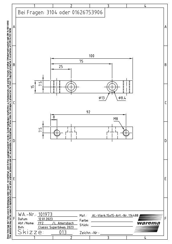 Außerdem habe ich eine Grundplatte für den Sitz entworfen, die ich bei Keller Jr. aka Enrico in Auftrag geben werde. Das wird zweifellos super!