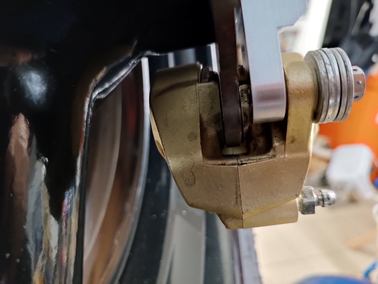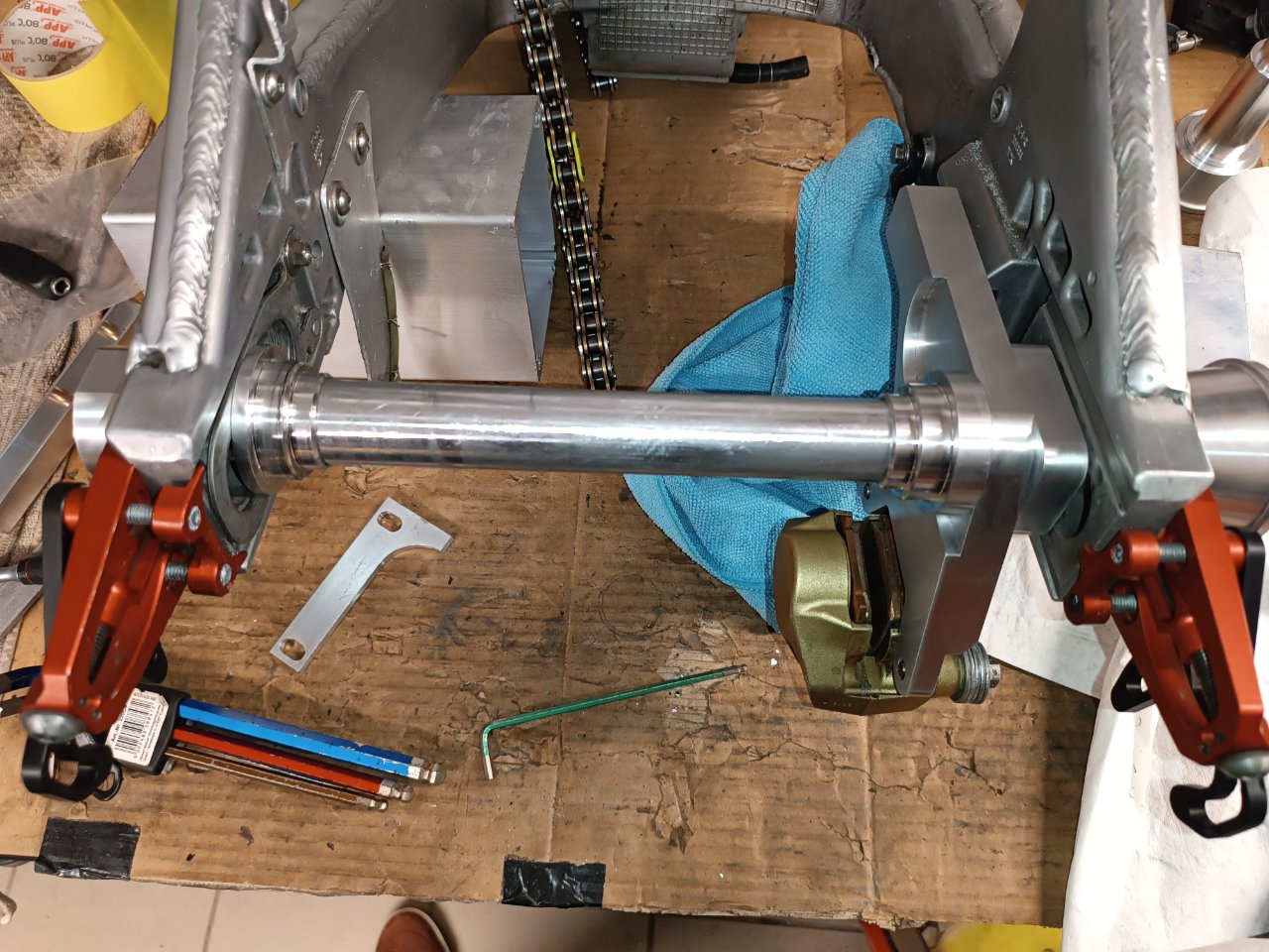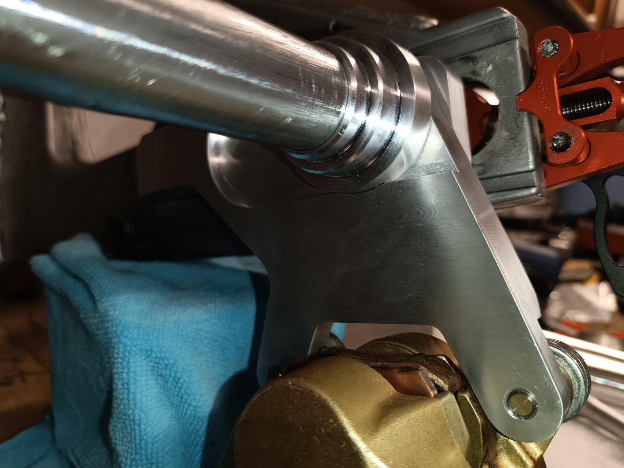 Beim ersten ranstecken siehts schonmal super aus. An der Bremsscheibe ist es relativ eng aber das schaue ich mir nochmal an, wenn die Schwinge komplettiert und eingebaut ist.
