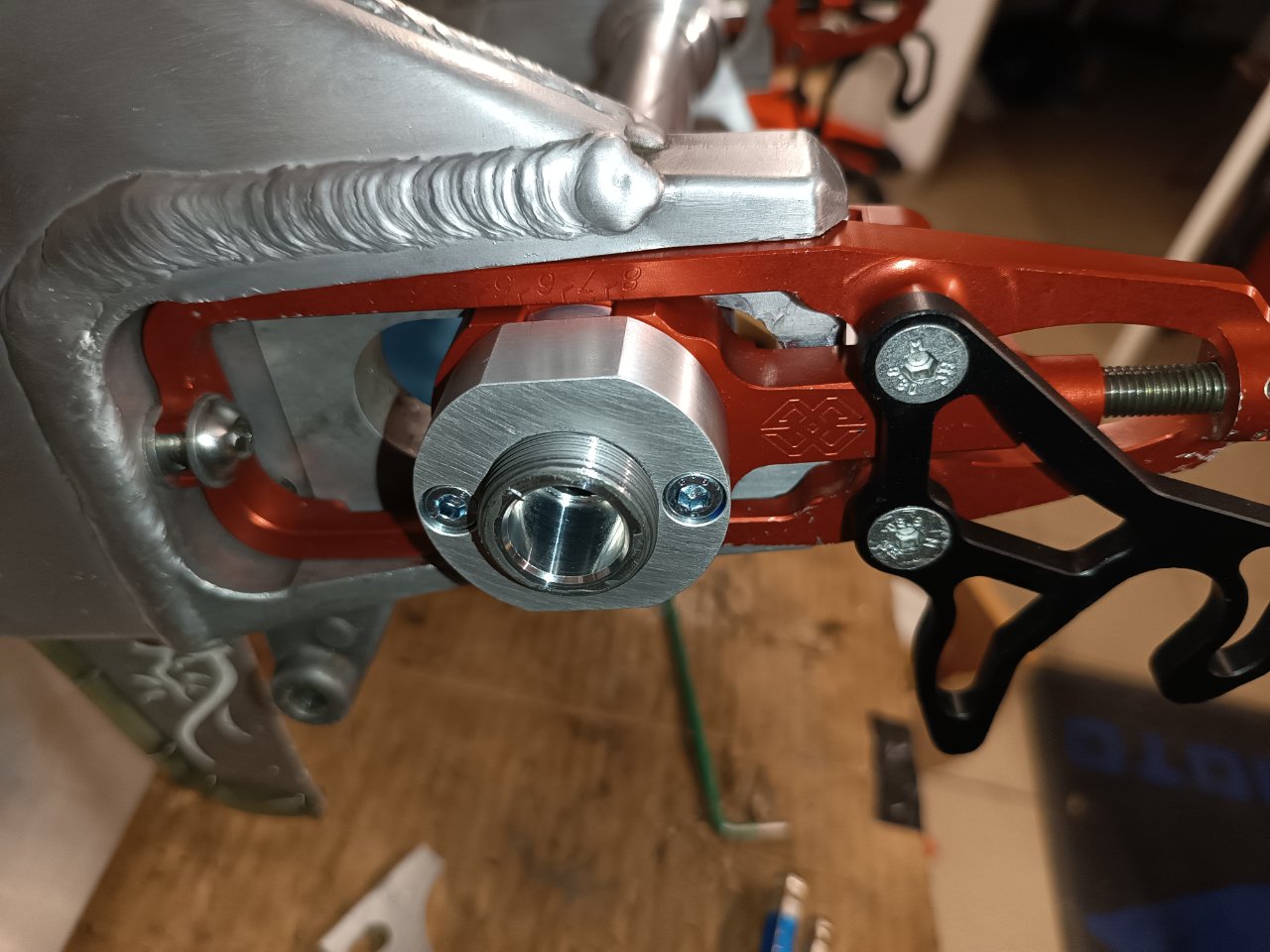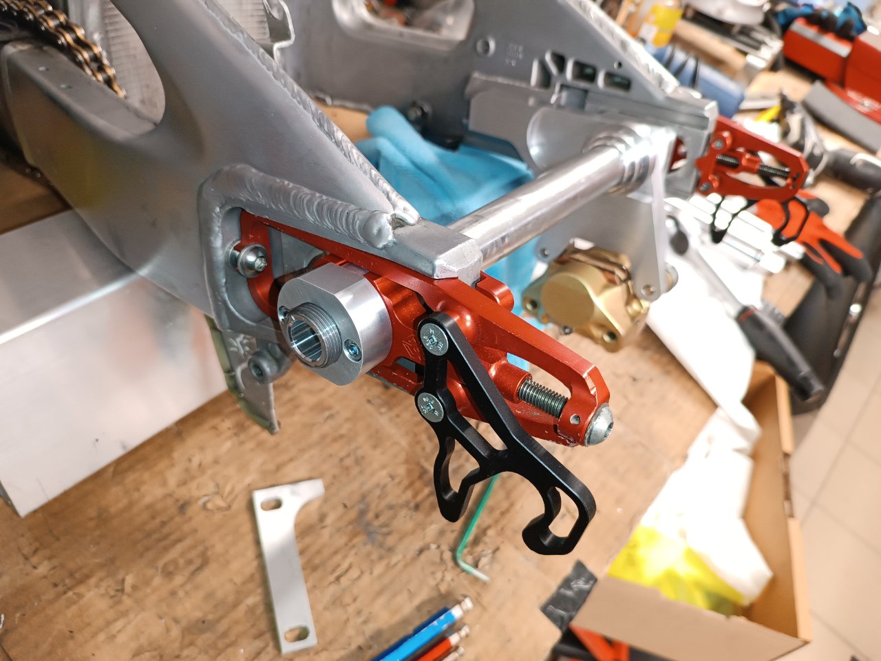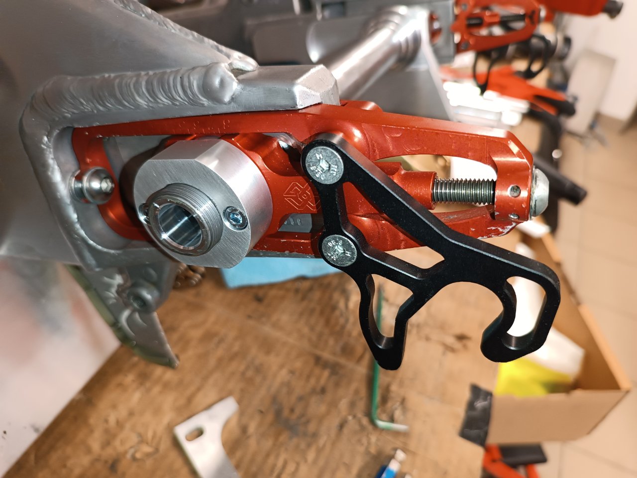 Und hier die fertig montierten Teile. Eine kleine Modifikation braucht die Schwinge noch, dann kommt die wieder rein.