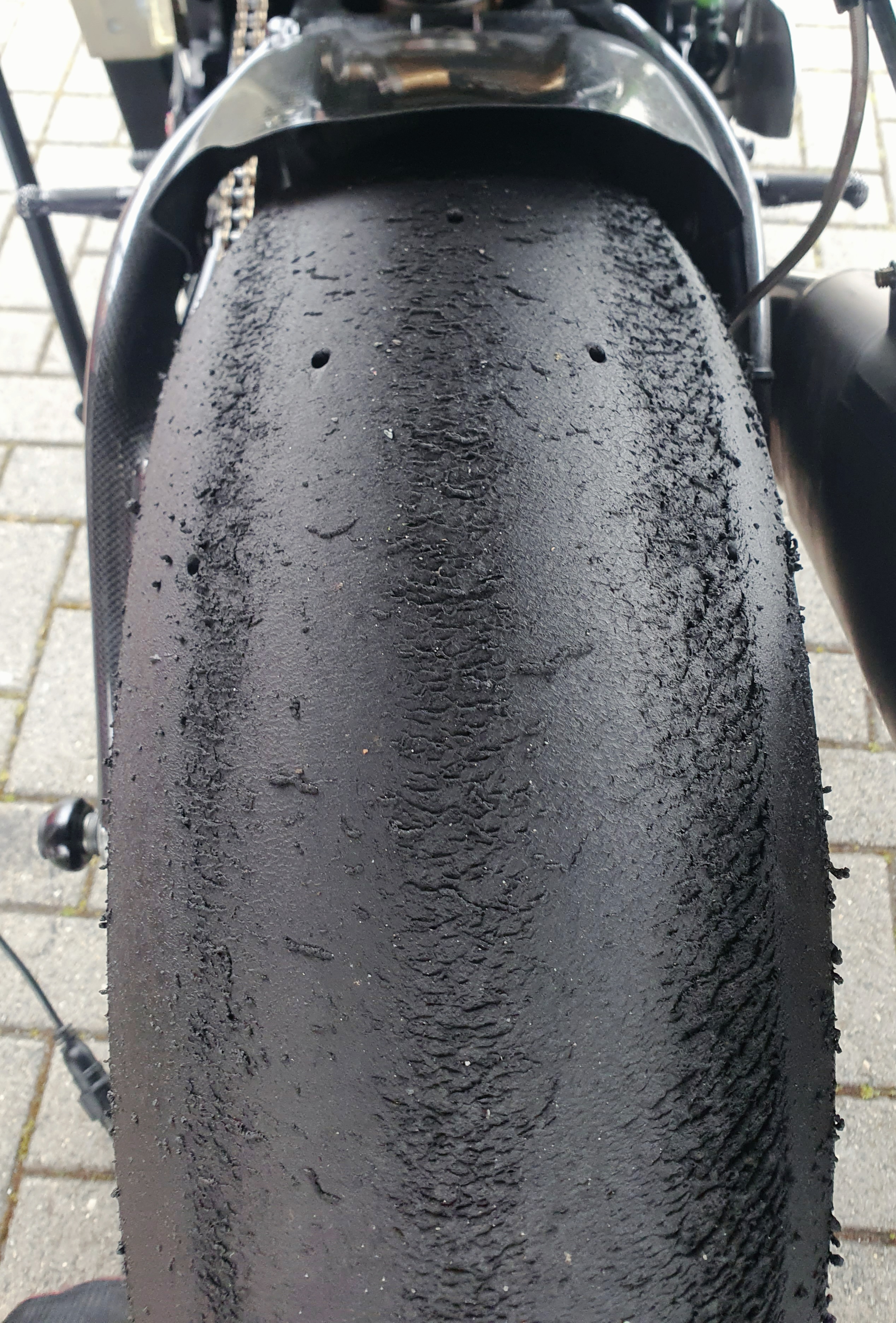 Hatte in meinen nun erst 4-5 Jahren Rennstrecke erst beim letzten Event 1 etwas Aufgerissenen Reifen. Das kam aber durch ein Misterös verstelltes Setup an der Gabel.