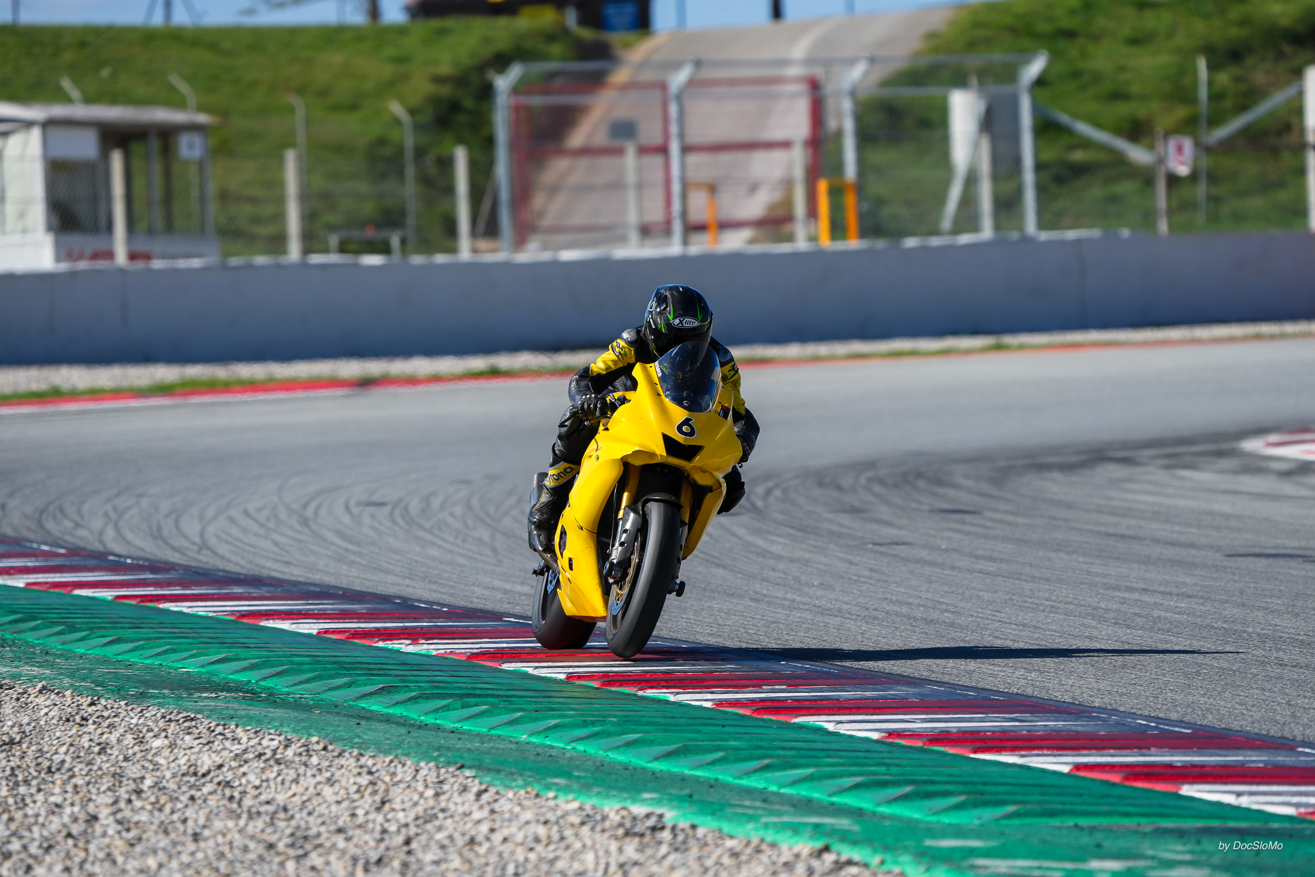 Circuit Catalunya, 18°C, die Frisur steckt in einen X-Lite 803, geplättet von einem miefendem Helmpolster. Kontaktlinsen habe ich schon seit gestern nicht mehr in Benutzung. Ich fahre ohne. Und ohne Brille. Zum Glück steht nirgends die Polizei. Es gibt wohl ein gewisses Risiko bei Verklag-mich-doch, aber bin kein Maulwurf, und wenn ich nicht richtig sähe, dann hätte ich vermutlich auch kein Interesse an hohen Geschwindigkeiten auf einem Zweirad. Oder fuhr ich genau deswegen neuerdings etwas schneller, weil ich eben nicht alles sah? Ich erinnerte mich an die Geschichten von Langstrecke im Dunkeln, wo alles irgendwie schattenhaft vorbeiflog, und man Linie eher intuitiv fand als durch Adleraugenanalyse. Ölfleck - weg. Asphaltübergänge - unsichtbar. Das Einzige, was zählte, hörte ich, sei die Erfahrung aus einer Vielzahl von Runden.