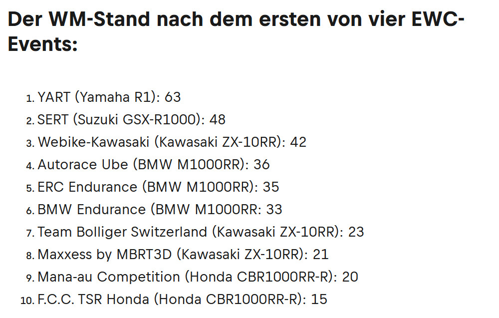 Vergiss nicht den BMW Sieg in der EWC Supersport Klasse mit Jan Bühn im Team 8)