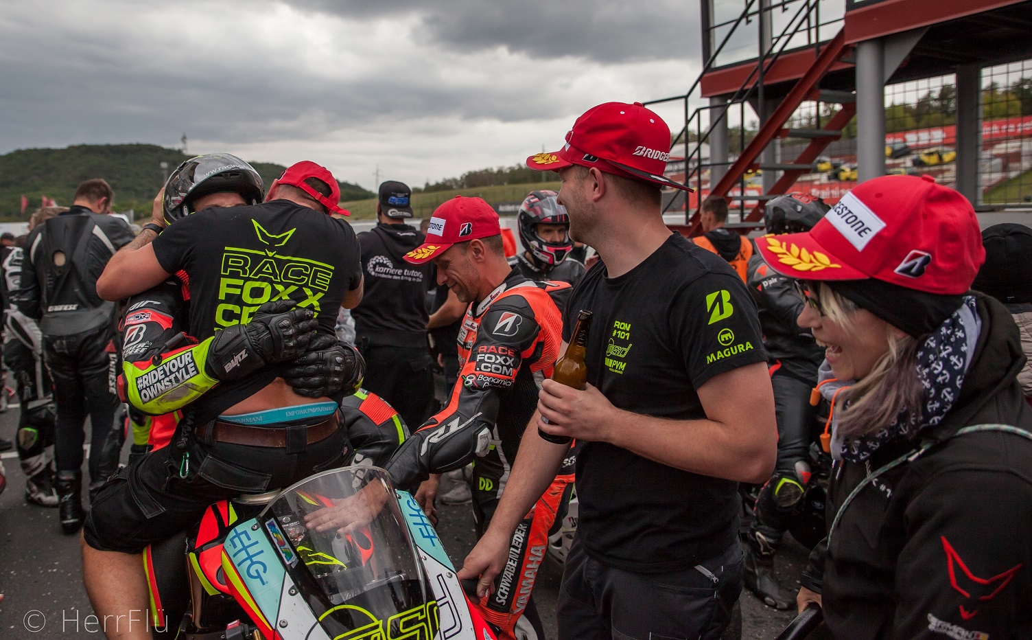 Bridgestone vor Ort, mit ner Kleinigkeit im Gepäck, zauberte uns ein Lächeln ins Gesicht und ich konnte bereits im 1. Stint eine 42,0.Für mich für die 2. Runde top! Im 2. Stint konnte ich noch einen draufsetzen und meine persönliche Bestzeit aus 2018 um 1/10 schlagen. 1.41,3 min auf der Uhr und das Beste, Pole Position!!! Zum ersten mal gingen wir von Position 1 aus ins Rennen. Was war das gut fürs Team.