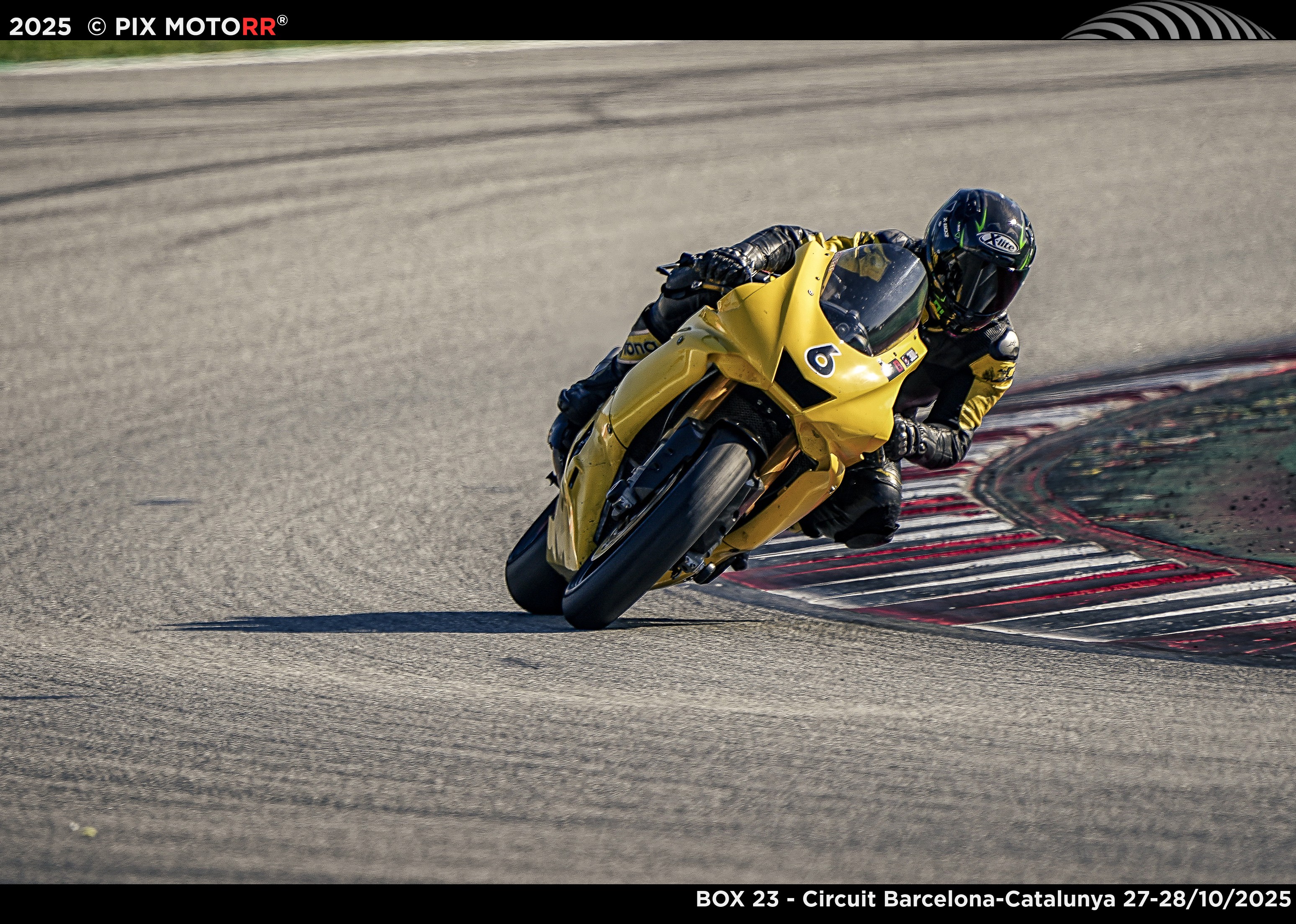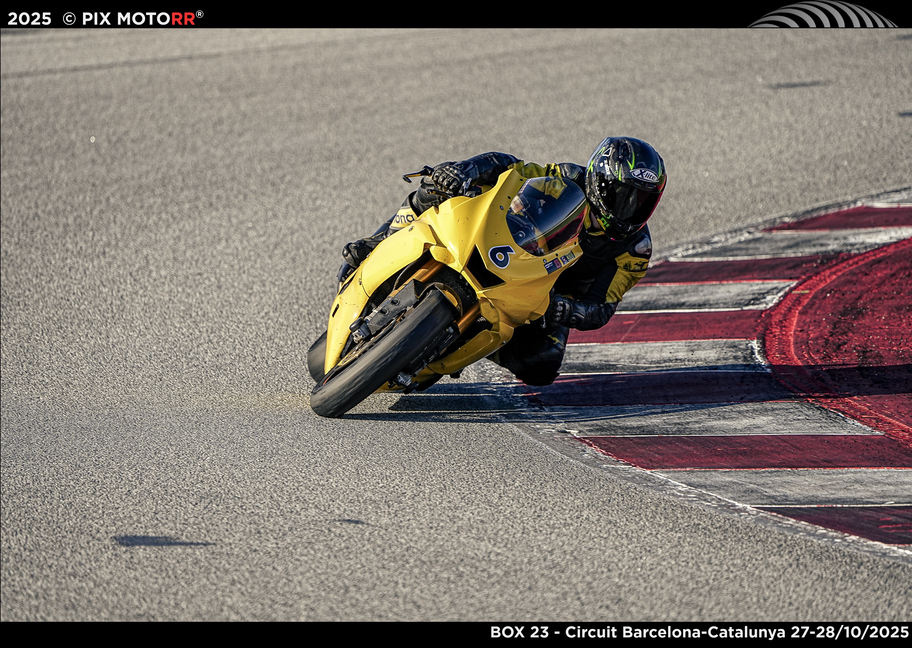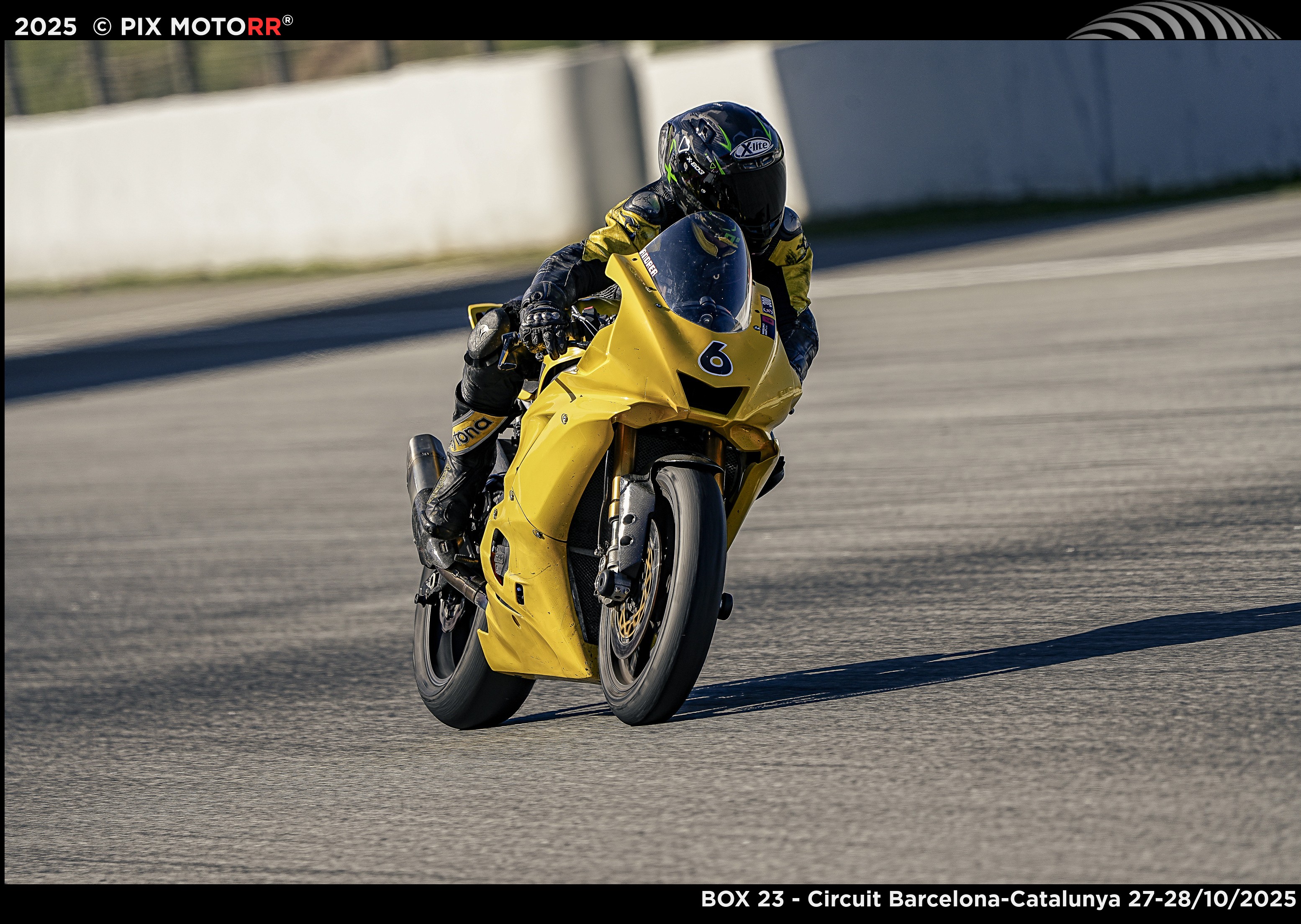 Neben dem Aufkleber von Box23, denen Startnummern immer noch piepschnurz war, klebte immer noch der Speer-Aufkleber - und die 6 vornedran. Warum auch nicht. Box23, ein netter kleiner Motorradfahrclub. Aber was hatten die denn geraucht, dass die eine Fahrerbesprechung so früh haben wollten? Mein Organismus hatte kaum die Zeitumstellung verarbeitet, wo es jetzt eklig früh dunkel wurde, sogar hier in Spanien, aber acht Uhr, das war immer noch sehr, sehr früh. Aber vielleicht war es gut so, dann konnte man sich langsam an die neuen Nasen gewöhnen. Box23. Das war nicht nur ein netter Motorradfahrclub, das war auch ein Sammelsurium von teuren Maschinen mit Leistung jenseits der 150 PS. Alles in rot oder schwarz mit rot, weiß und grün. Man hatte es gern italienisch. Und dazwischen ein kleines gelbes Mädchenmoped.
