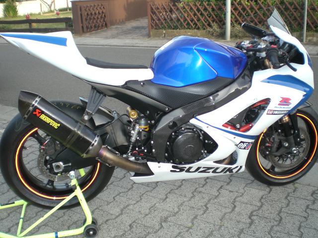 SUZUKI GSX-R 1000 K7 Superbike<br />mit folgendem Zubehör:  Yoshimura Zündbox und Kabelbaum, Yoshimura Schaltautomat, Yoshimura Alu Ansaugtrichter, BMC Luftfilter, Öhlins Cartridge Stufe 4, Öhlins TTX Federbein, WP Lenkungsdämpfer, TRW Racing Fußrastenanlage, Brembo RCS 19 Bremspumpe, Stahlflex vorn und hinten, 520 DID Racing Kettensatz, Akrapovic kompl. Anlage, Alu Tankdeckel, PVC Lenkanschläge, verstellbarer CNC Brems und Kupplungshebel, Silicon Kühlerschläusche, Folgende Teile sind aus Carbon: Armarturenhalter, Radabdeckung hinten, Motordeckel links und rechts, Rahmenschützer links und rechts, Starlane STEALTH GPS-2 Laptimer, neuer Wasser und Ölkühler, neue Reifen Pirelli Superbike Slick (hinten 200/60/17), Bremsbeläge neu