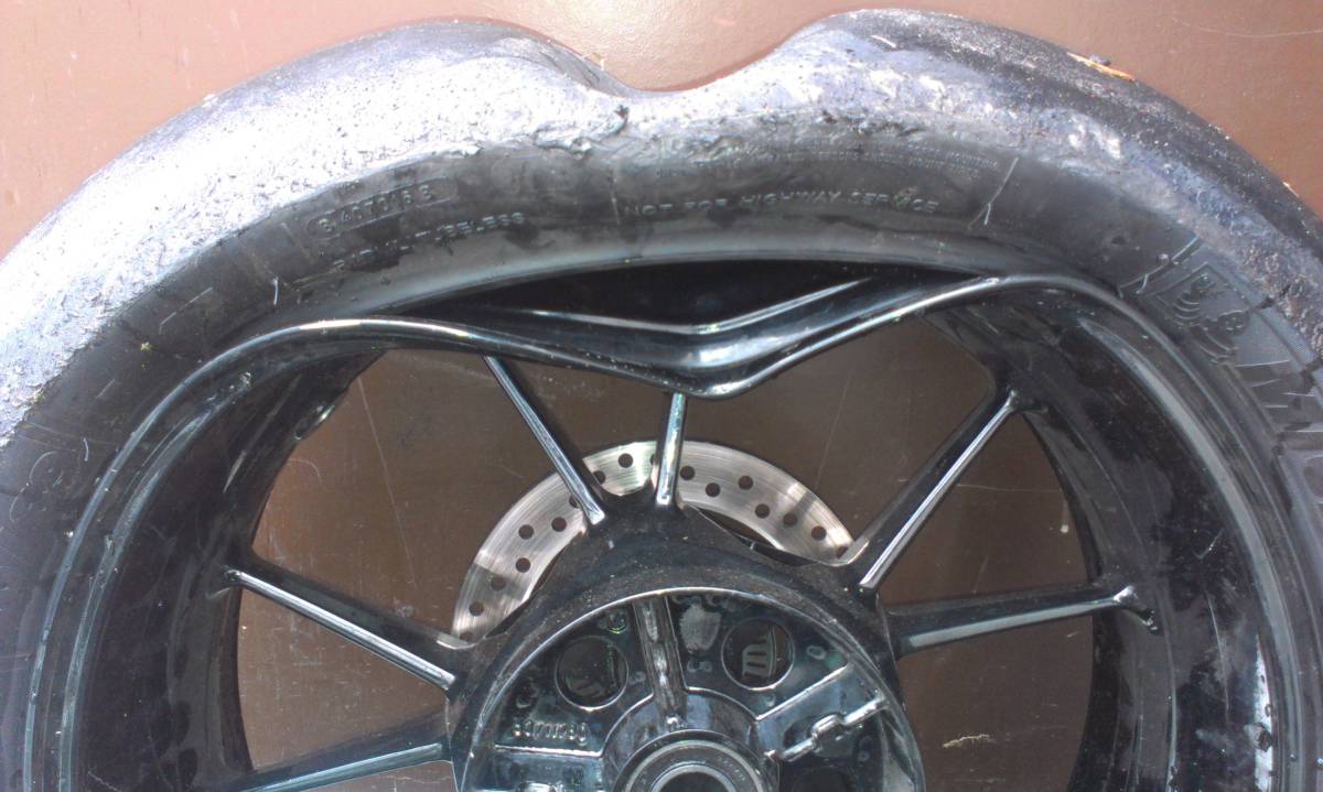 Die Felge ist nicht gerissen, nur leicht verbogen an der einen Stelle.
