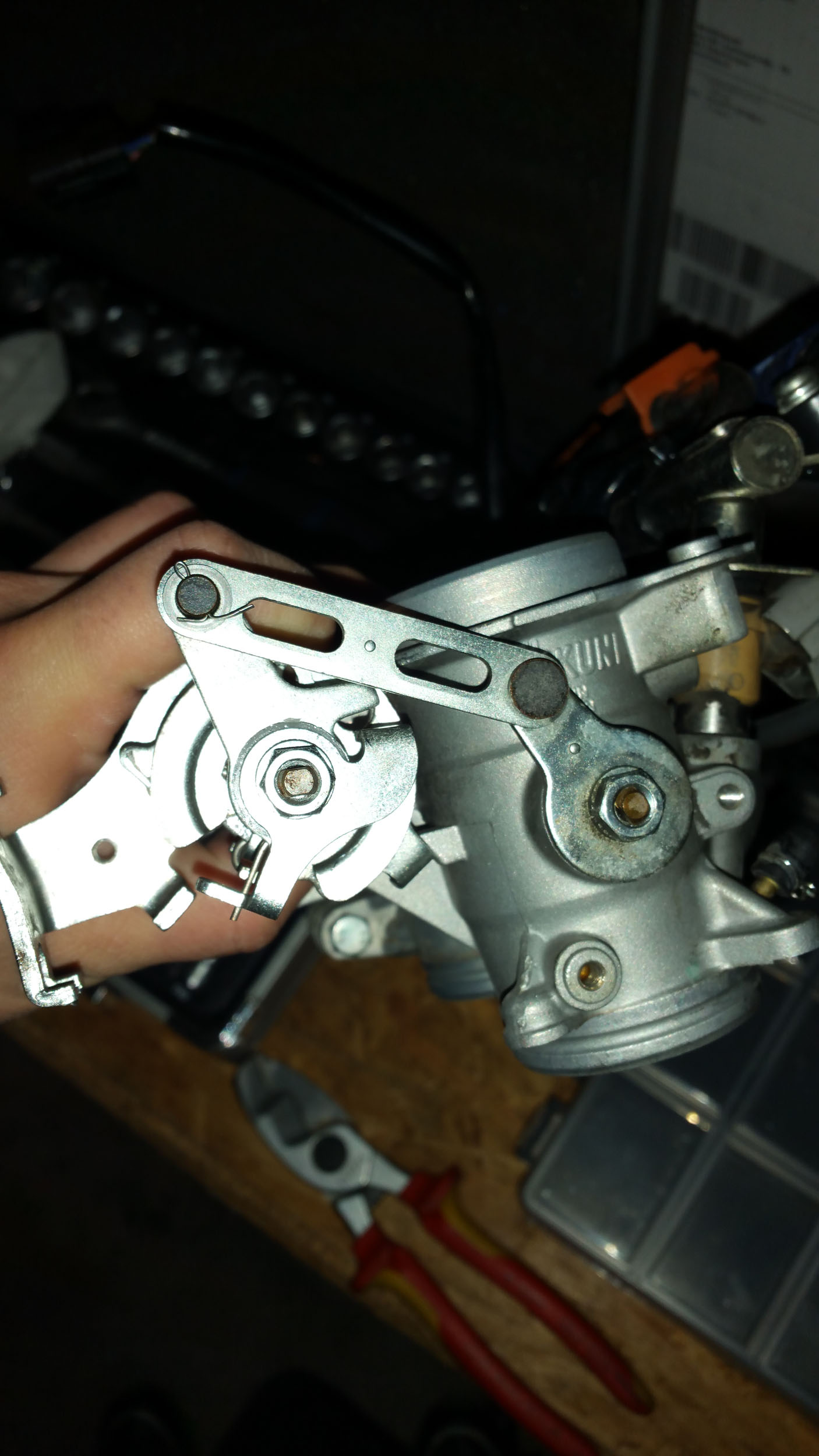 meinst du mit der "Verbindungsstange zwischen dem Gaspoti und der Betätigung des Seilzuges" das im Bild rot markierte.