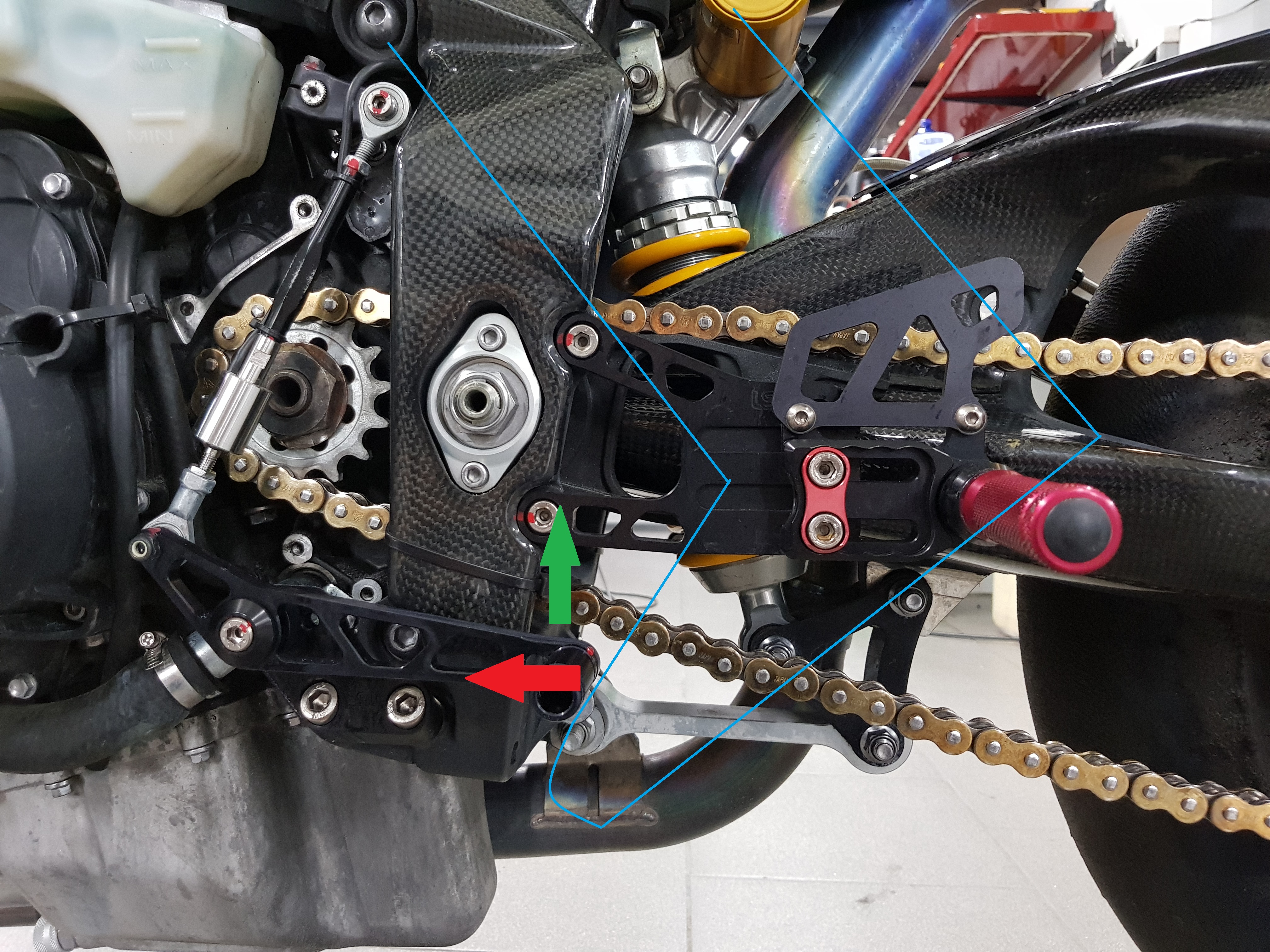 Ich fahre eine 2012er Daytona R und muss, damit ich bedingt durch angenehmen Kniewinkel und Schuhgöße und allem sauber und ohne die Ferse von der Raste nehmen zu müssen an den Schalthebel komme, den Schalthebel wie folgt montieren: Und genau da liegt der Hund begraben (rote Linie)